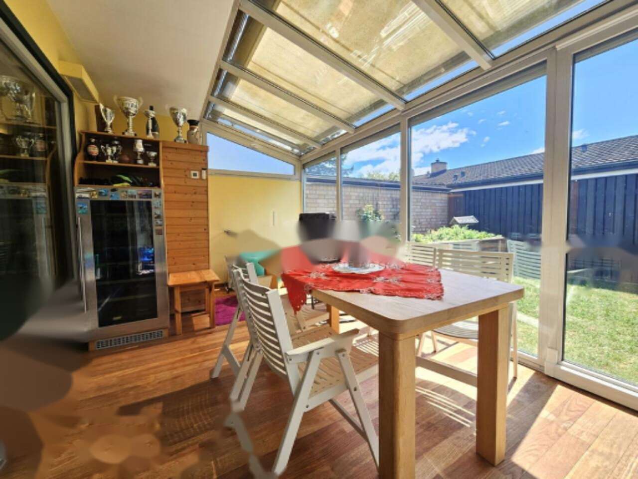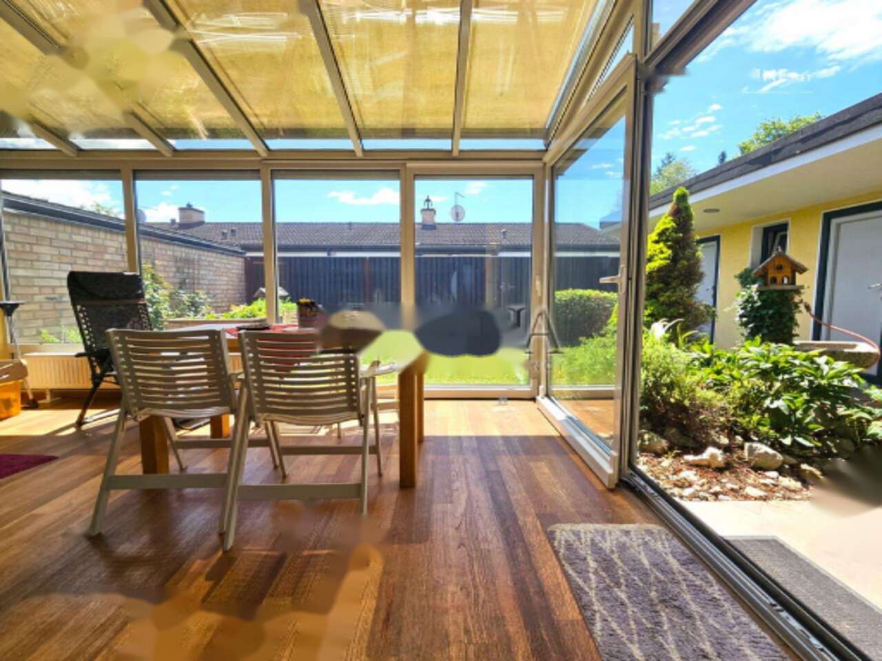 Этот дом расположился в конце ряда и имеет тщательно продуманную планировку. В нем есть удобный вход, ведущий в хозяйственное помещение для стирки, светлый холл, откуда легко попасть в каждую зону дома. Здесь вы найдете отдельный туалет, кухню с обеденной зоной, гостиную, ведущую к зимнему саду и террасе, большую ванную комнату и три спальни. Одна из спален выходит на террасу, что добавляет ей особую привлекательность. На участке имеется просторное садовое помещение с двумя отдельными комнатами. Помимо этого, дом оснащен двумя гаражными стоянками, одна из которых оборудована станцией зарядки автомобилей.