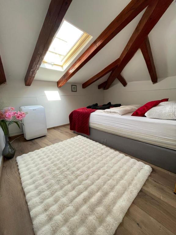 Построенная в 1986 году, квартира прошла полную реконструкцию в 2023 году. Она находится на мансарде и включает два дополнительных этажа. Роскошный интерьер в сочетании с тёплыми полами и кондиционером обеспечивает комфорт в любое время года. Жильё полностью укомплектовано мебелью и техникой и готово к проживанию.