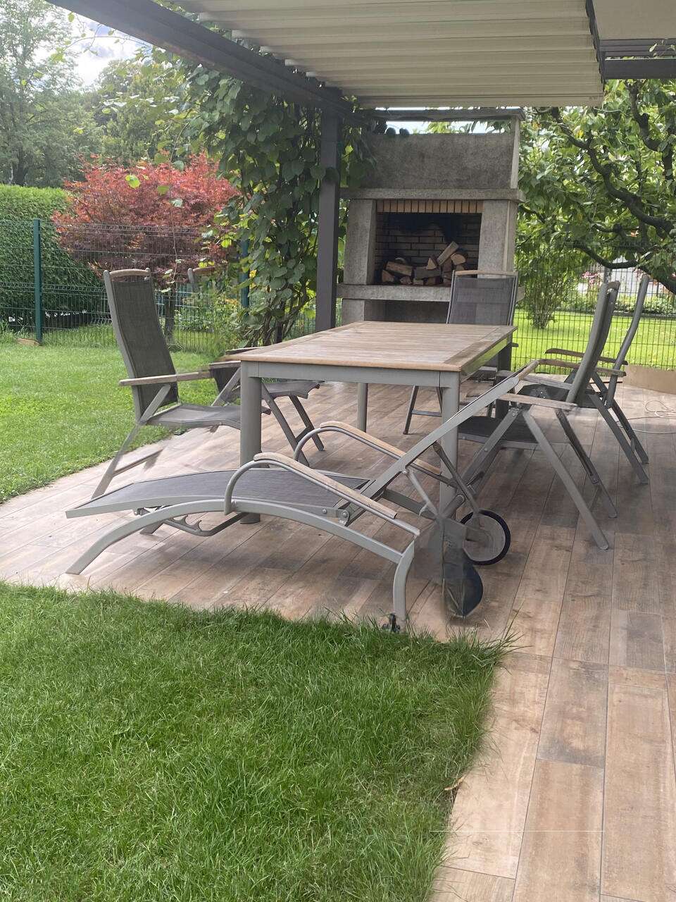 Перед домом имеется три парковочных места. Окруженный зеленью, дом предоставляет идеальные условия для семейной жизни, находясь в непосредственной близости от различных объектов инфраструктуры: школа (20 м), международная школа (1 км), автобусная остановка (напротив), детский сад (200 м), лес (200 м), и в радиусе 500 м – магазины, медицинский центр, почта и рестораны.
