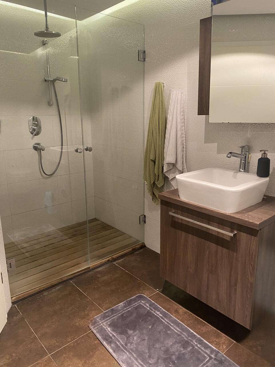 Дом полностью меблирован и готов для нового владельца. На каждом уровне установлены кондиционеры Daikin. Стены утеплены каменной ватой толщиной 18 см и покрыты фасадом Baumit. На крыше располагаются солнечные панели мощностью 10 кВт с системой нет-метеринга для производства электроэнергии. Отопление обеспечивается газовым котлом на природном газе, а на первом уровне функционирует теплый пол; на остальных этажах установлены радиаторы. В гостиной предусмотрено дополнительное отопление камином.
