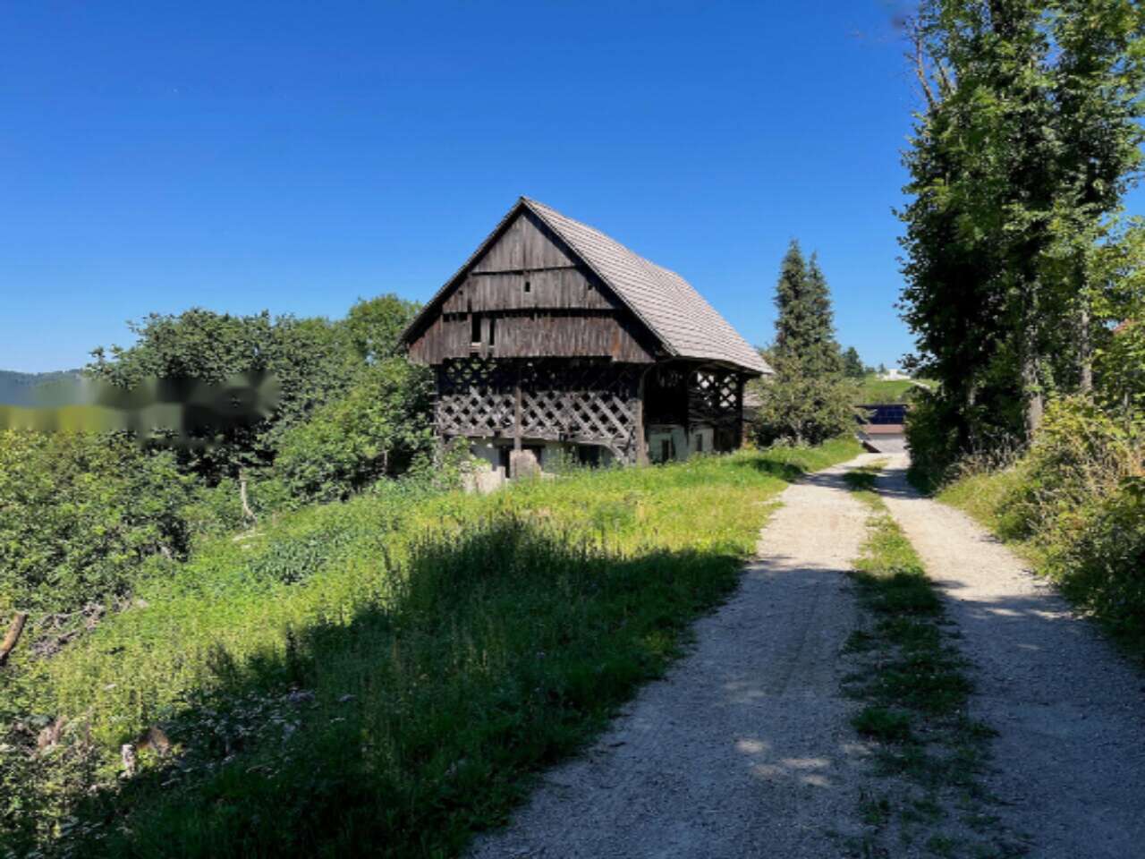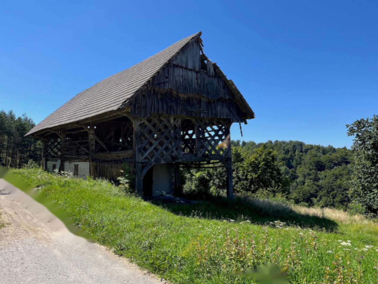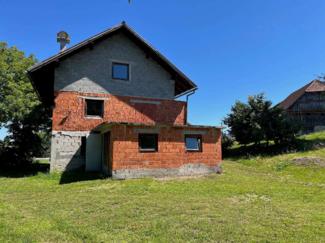 На участке находится традиционное строение — дом с гаражом, возведенный в 1990 году, чья полезная площадь составляет 158 м². Здание включает цокольный этаж, этаж и чердак. Также на территории располагается словенский амбар-козолац, датируемый 1906 годом, требующий реставрации.