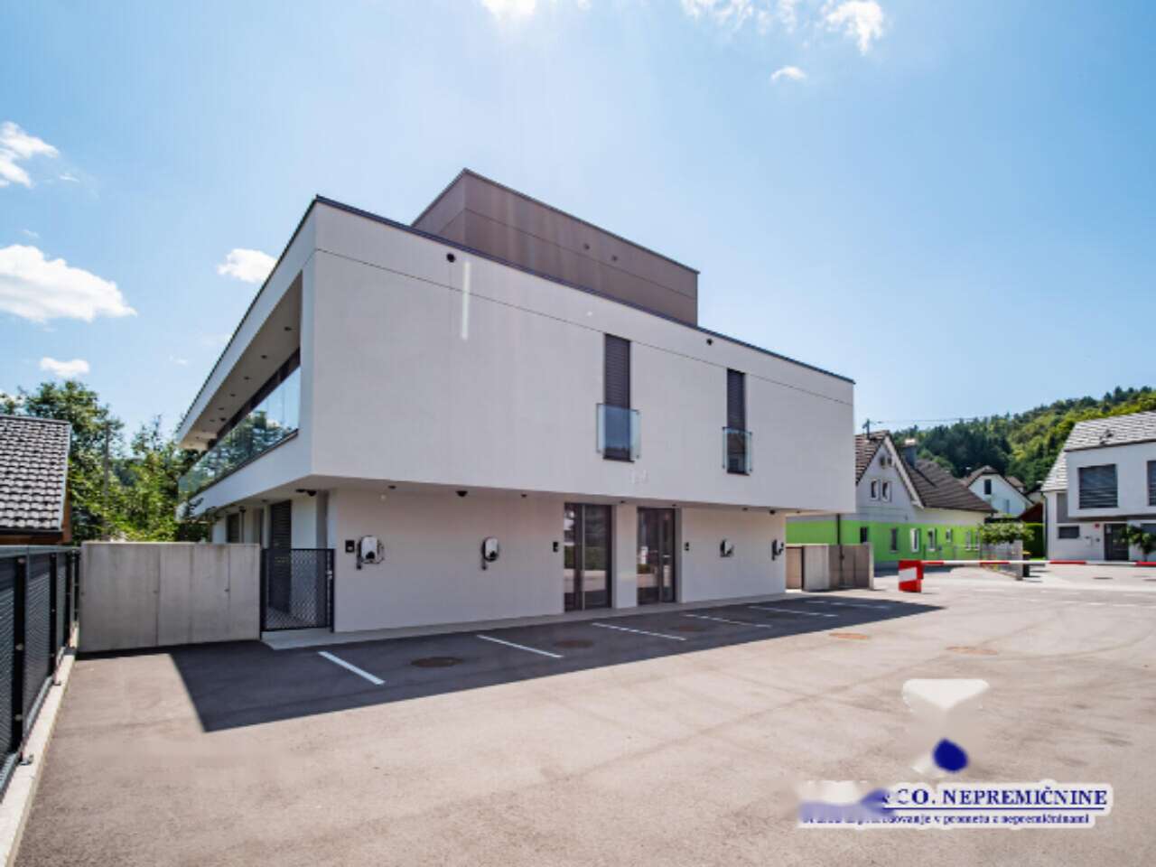 В апартаментах предусмотрен отдельный вход, личная комната для велосипедов и два парковочных места, одно из которых готово к установке зарядки для электромобиля. Ванная комната оборудована дополнительным электрическим радиатором. Архитектурное планирование трехэтажного здания позволяет оптимально использовать как внутренние, так и внешние пространства, обеспечивая наивысший уровень комфорта.