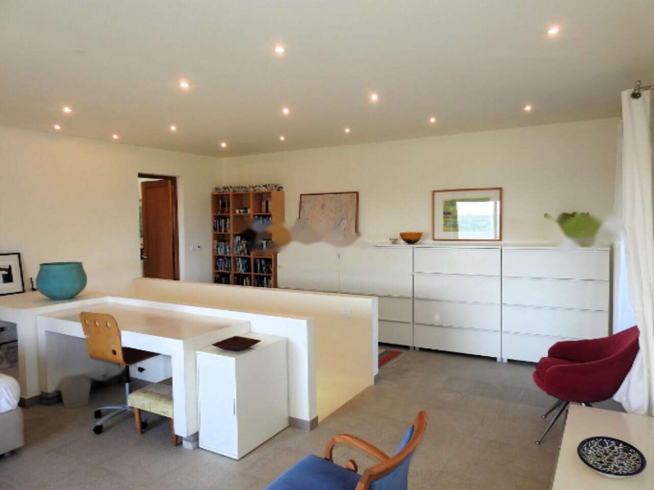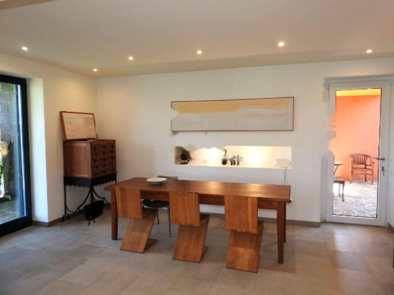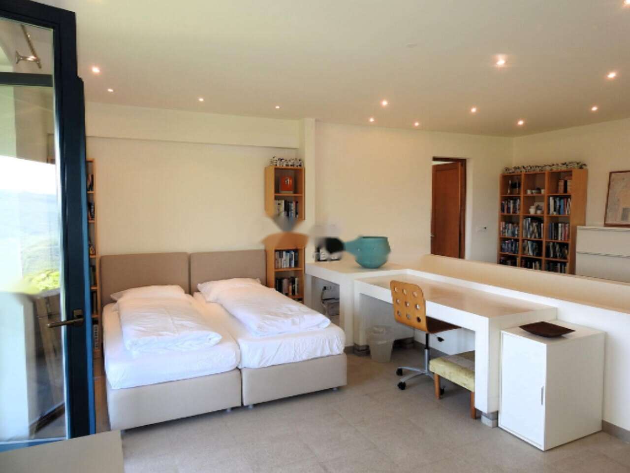 На первом этаже разместилась просторная гостиная с выходом на террасу и бассейн, облагороженный современным атриумом, столовая, а также функциональная кухня с хозяйственным блоком. Второй уровень предлагает большой спальный участок с доступом на балкон и крытую террасу, а плюс к этому — отдельную спальню с ванным помещением. В подвале устроен просторный развлекательный зал с туалетом и отдельным подвалом. Вблизи располагаются два автономных апартамента, оснащённых кухней и ванной, идеально подходящих для гостей или независимых жильцов.