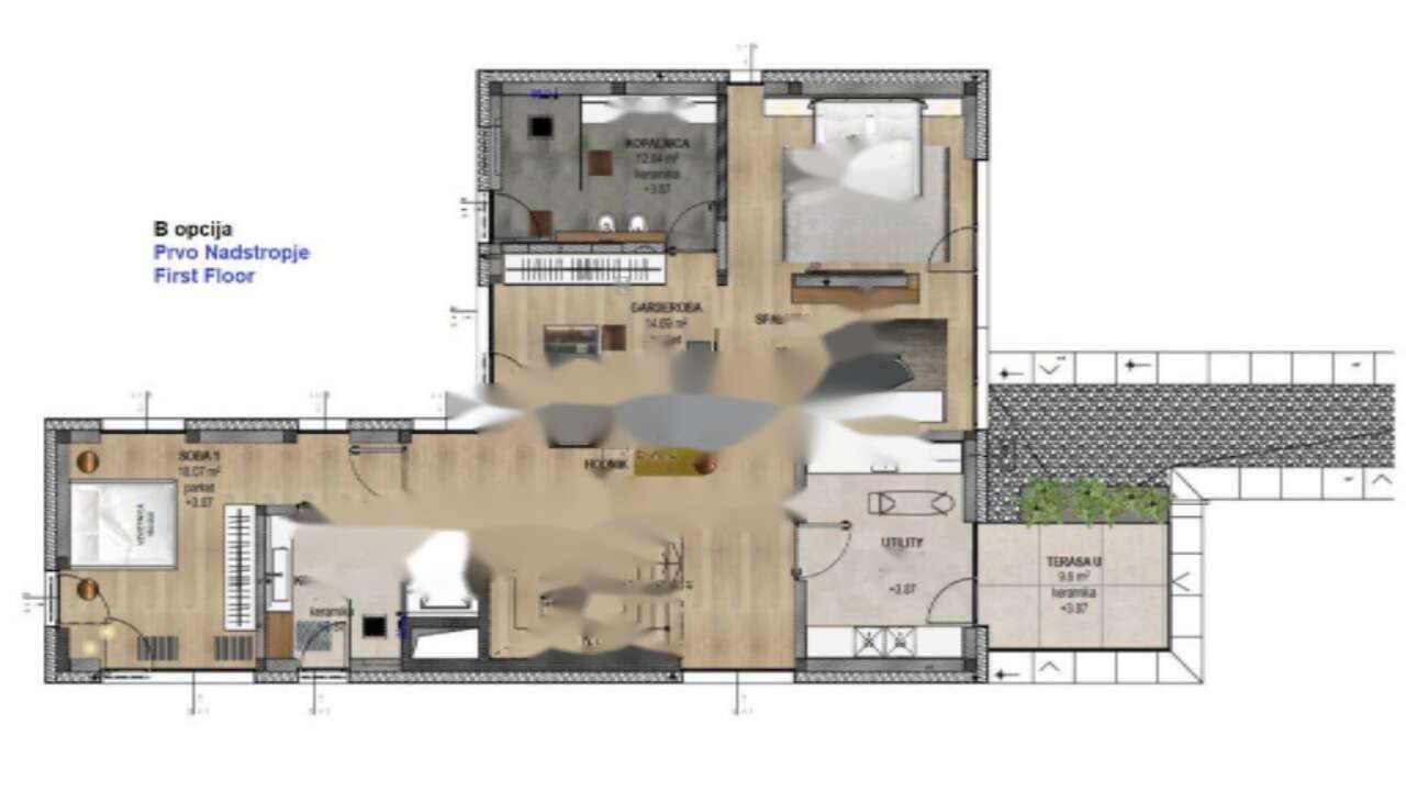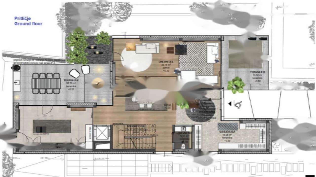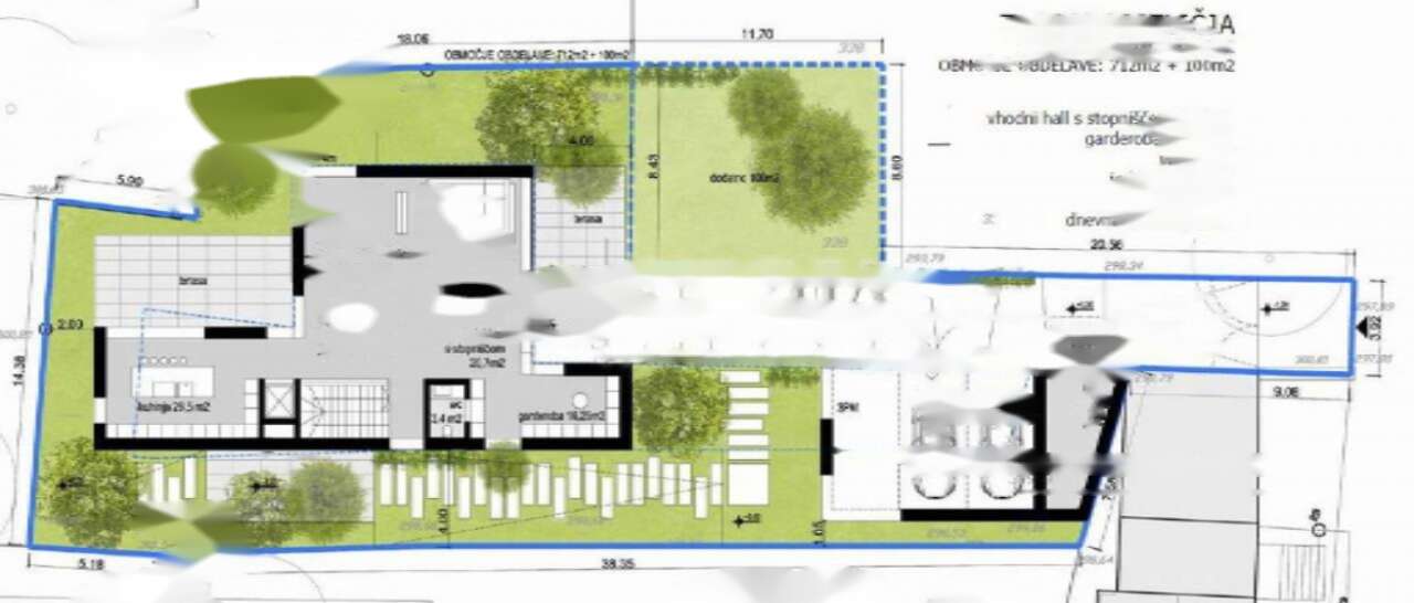 Позвольте представить вам этот впечатляющий одноэтажный дом, расположенный в районе Рожна Долина, города Любляны. Этот современный и просторный дом площадью 450 м² занимает земельный участок размером 824 м², который может быть увеличен за счет дополнительных покупок.
