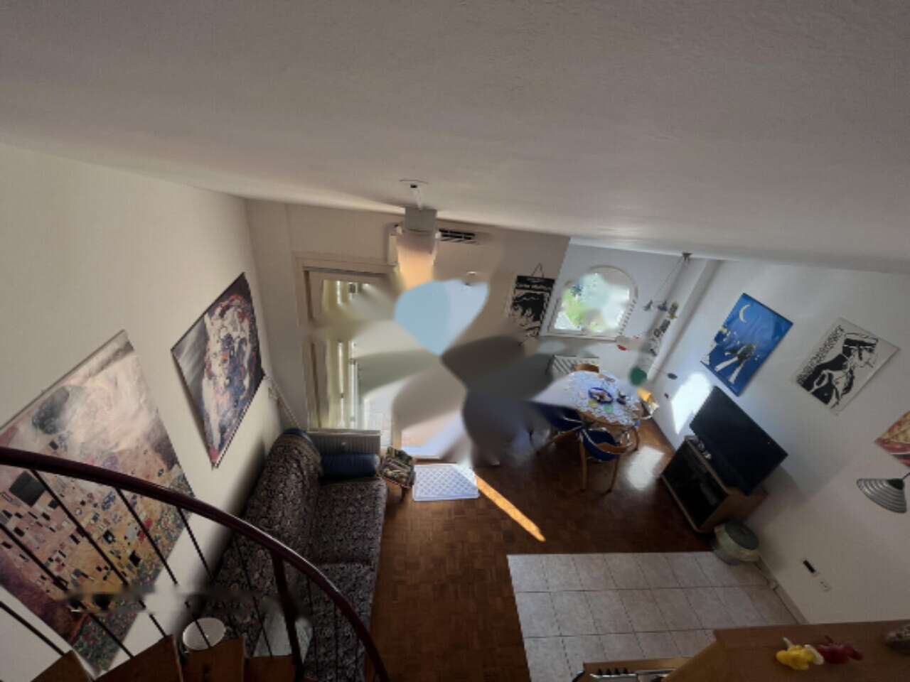 На нижнем уровне располагаются кухня, объединённая с гостиной, ванная комната, кладовая и балкон. Верхний уровень отводится для уютной спальной зоны на галерее. В прошлом году заменили все мансардные окна, установили современную систему кондиционирования, новый холодильник и стирально-сушильную машину.
