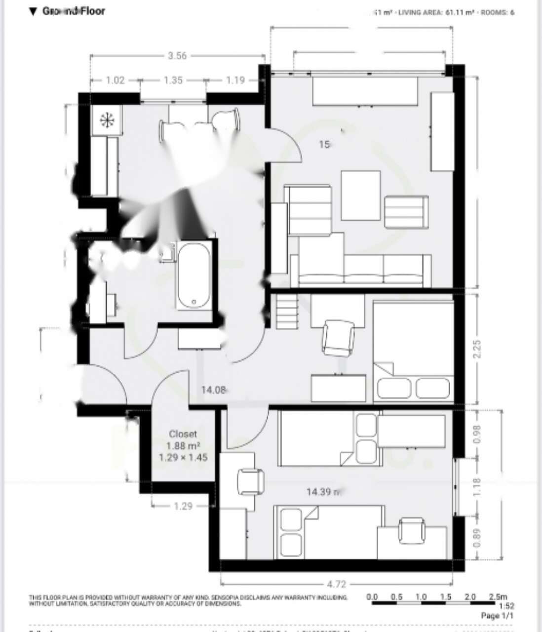 Здание, где находится квартира, находится в отличном состоянии: семь лет назад была обновлена крыша, а на 2024 год запланировано обновление фасада и наружного утеплителя с установкой 15-сантиметрового изоляционного слоя, что улучшит его энергетические характеристики (класс A2, расход 10 - 15 кВт*ч/м² в год). Отопление в квартире централизованное.
