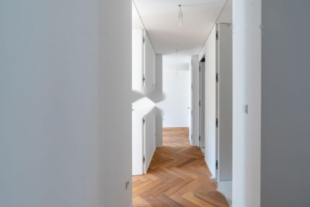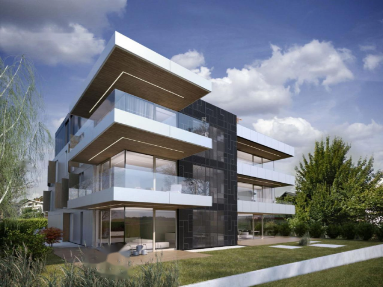 Проект выполнен в современном архитектурном стиле с применением высококачественных материалов: дубовые паркетные полы, алюминиевые оконные конструкции, а также передовые системы отопления, охлаждения и вентиляции в стенах и на потолке. Высокие потолки и скрытые крепления для занавесок добавляют элегантности и уюта.