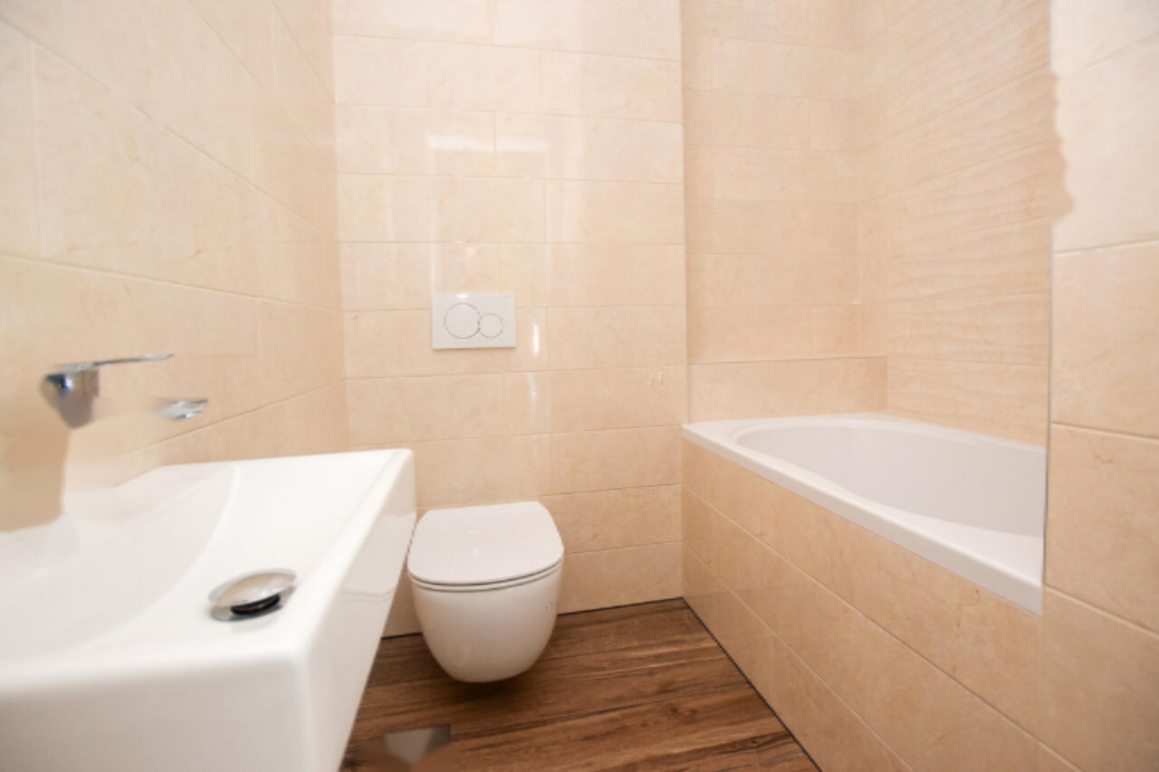 Квартира полностью готова для заезда: финальная отделка завершена, санузлы оборудованы, остаётся лишь установить осветительные приборы и мебель.