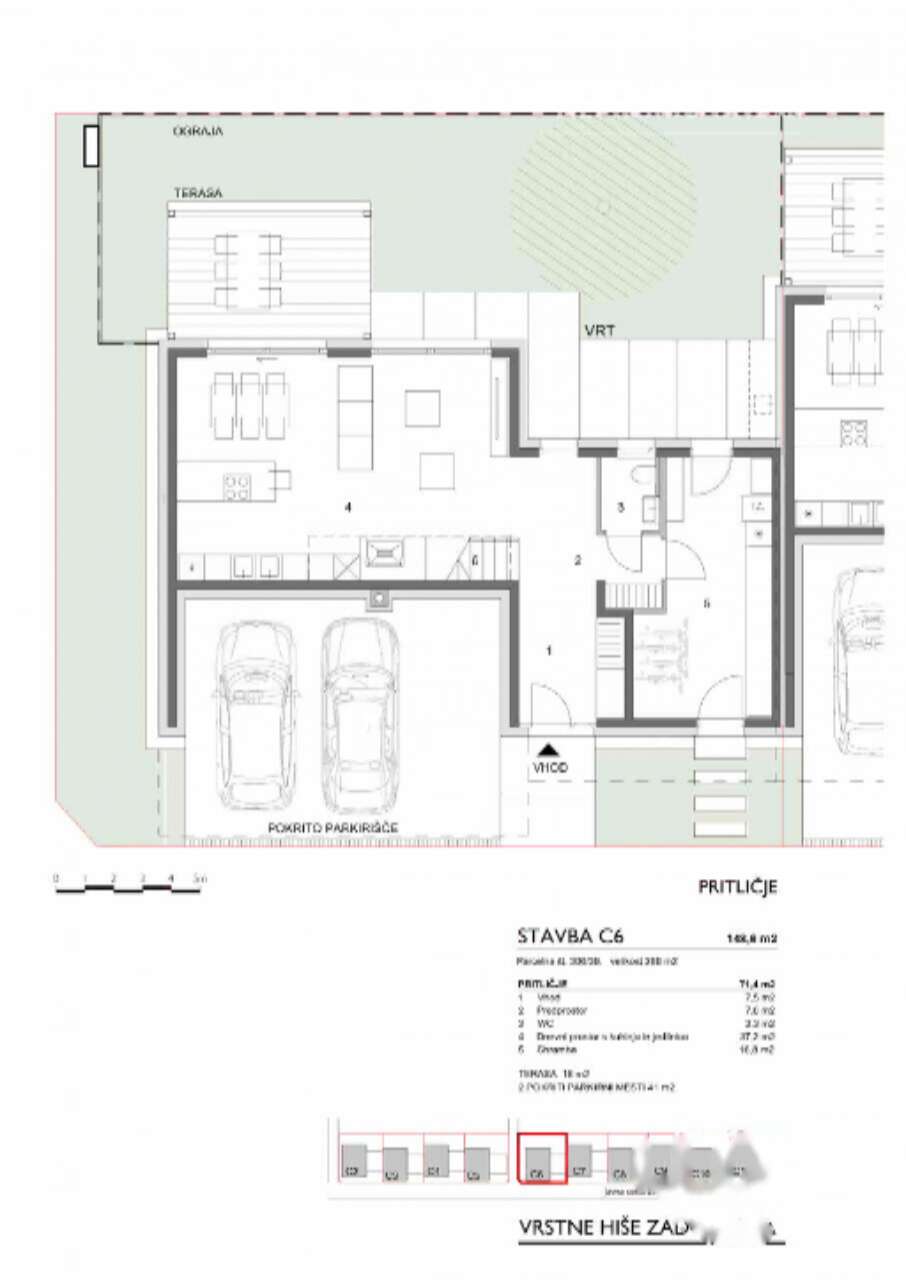 Рады представить вашему вниманию новое предложение — современный дом с террасой, расположенный в развивающемся жилом районе Згомняя Задоброва, неподалеку от восточной окружной дороги Любляны. Здание занимает 148,58 м² и возведено в 2025 году, его территория — 260 м². Дом в два этажа включает гараж на два автомобиля и отдельную кладовую.