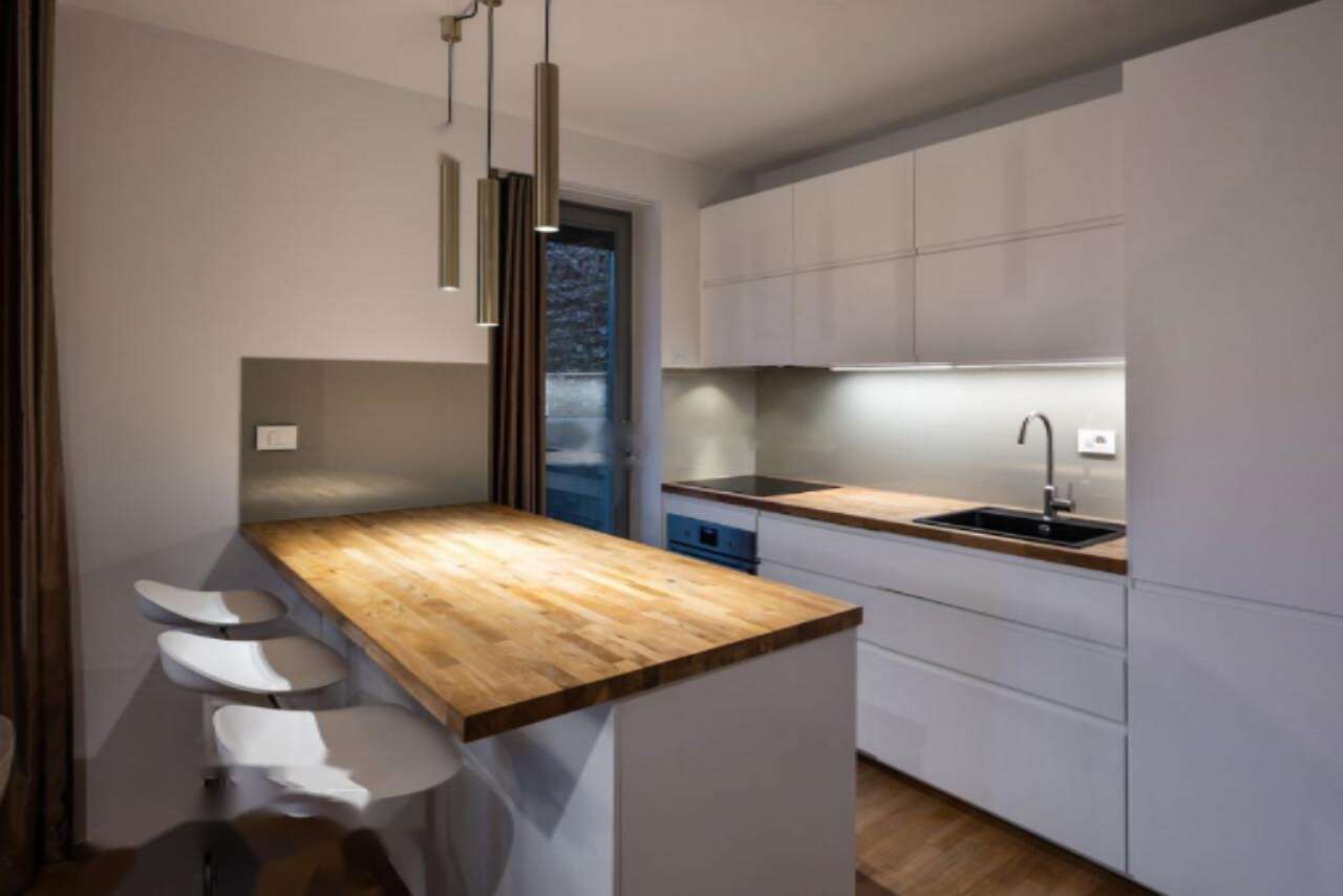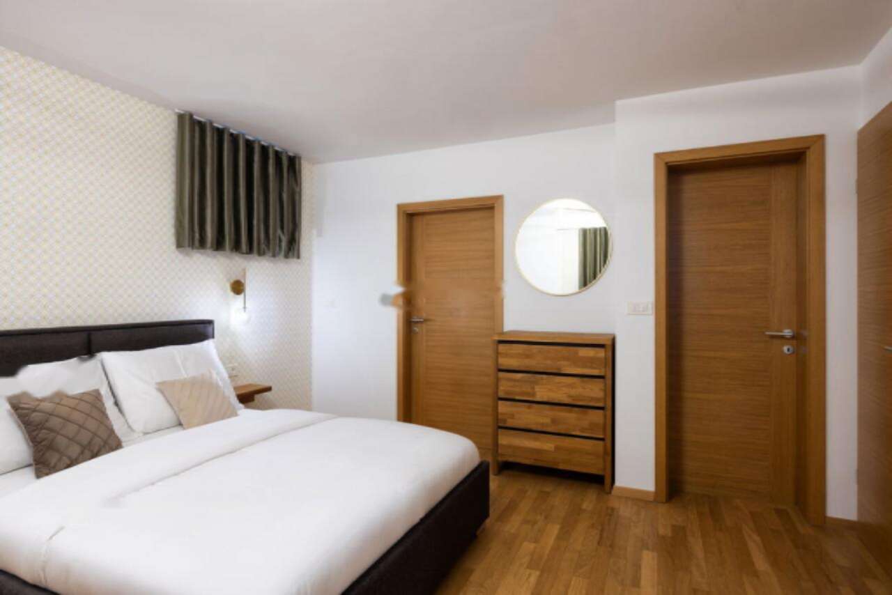 На продажу выставлена уникальная четырехкомнатная квартира в престижном жилом комплексе с захватывающим видом на озеро Блей. Просторное жилье площадью 153 м² распределено на четыре уровня и включает функциональный земельный участок площадью 62 м², а также два парковочных места.