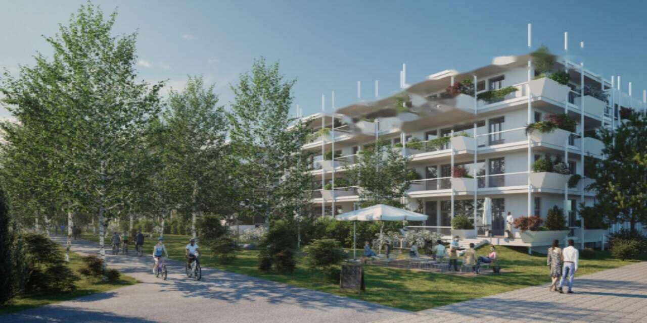 Комплекс не предназначен для автомобильного движения: предусмотрены гаражные парковки, чтобы обеспечить безопасность на детской площадке и общей террасе. На территории установлены скамейки, создающие условия для социальной активности жильцов. Пространство разделено на функциональные зоны: основной зал на 73,1 м², техническое помещение площадью 6,0 м² и террасу размером 19,8 м².