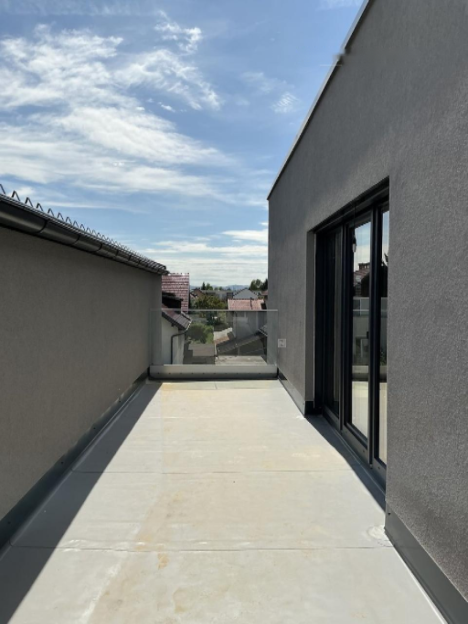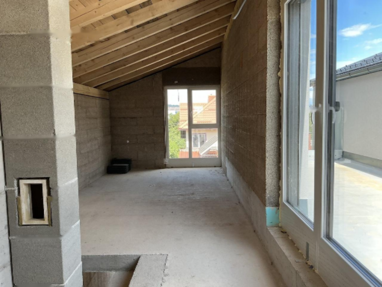 Продается новый современный дом с террасой, находящийся в районе Вижмарье. Строительство завершено в 2025 году, объект располагается на участке размером 178 м². Дом имеет три уровня: первый и второй этажи, а также мансарду, с общей площадью 194,3 м² и жилой площадью 164,5 м².