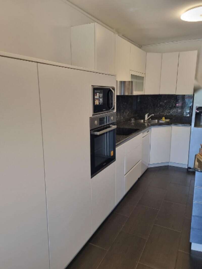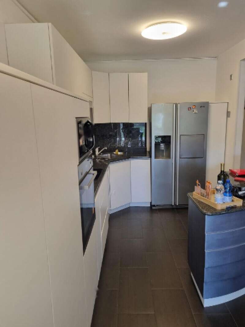 Отсутствие перегородок между жилыми зонами придаёт квартире ощущение простора и света. Все помещения снабжены качественными напольными покрытиями из керамики и паркета, а также современным оборудованием и мебелью, которые остаются в квартире после покупки. Собственная кладовая, общая велосипедная секция в подвале, а также общая терраса и сушилка в мансарде дополняют предложение. Регулярное обслуживание дома включает недавнюю изоляцию и обновление фасада в 2021 году. Парковочные места находятся сразу перед зданием.