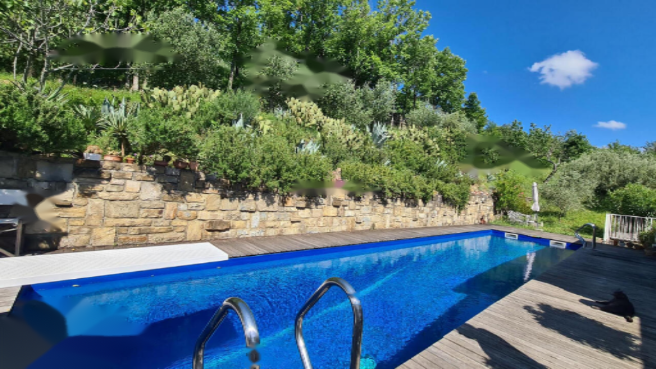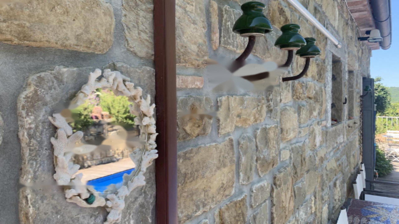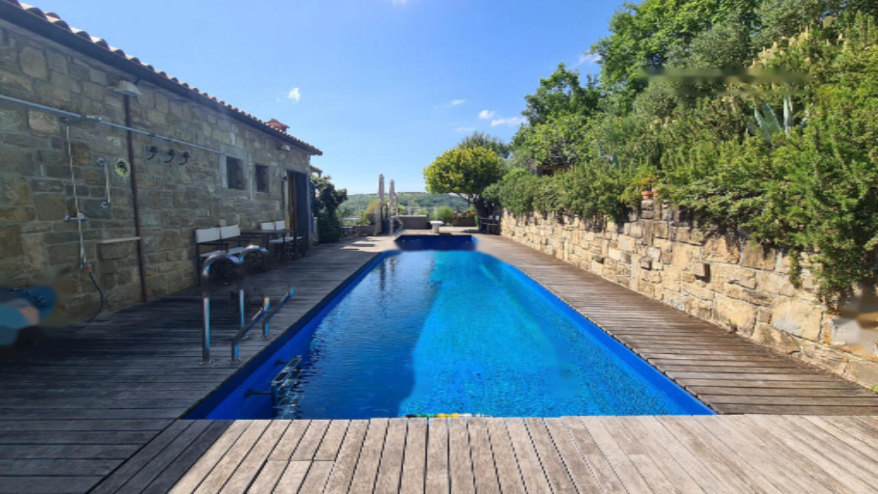 Участок земли в 5.703 м² окружен лесами и древними каменными стенами, а также включает оливковые рощи и фруктовые сады с гранатами, айвой, мушмулой и черешней. Частично участок сдан в долгосрочную аренду. Дом включает два этажа и два отдельных жилых помещения, которые можно как объединять, так и оставить отдельными. Светлые интерьеры с открытыми планировками и природными материалами создают уют и ощущение простора. В гостиной площадью 65 метров расположены камин, винный погреб, основная спальня, кабинет-библиотека и студия, а мансарда предлагает великолепные виды.