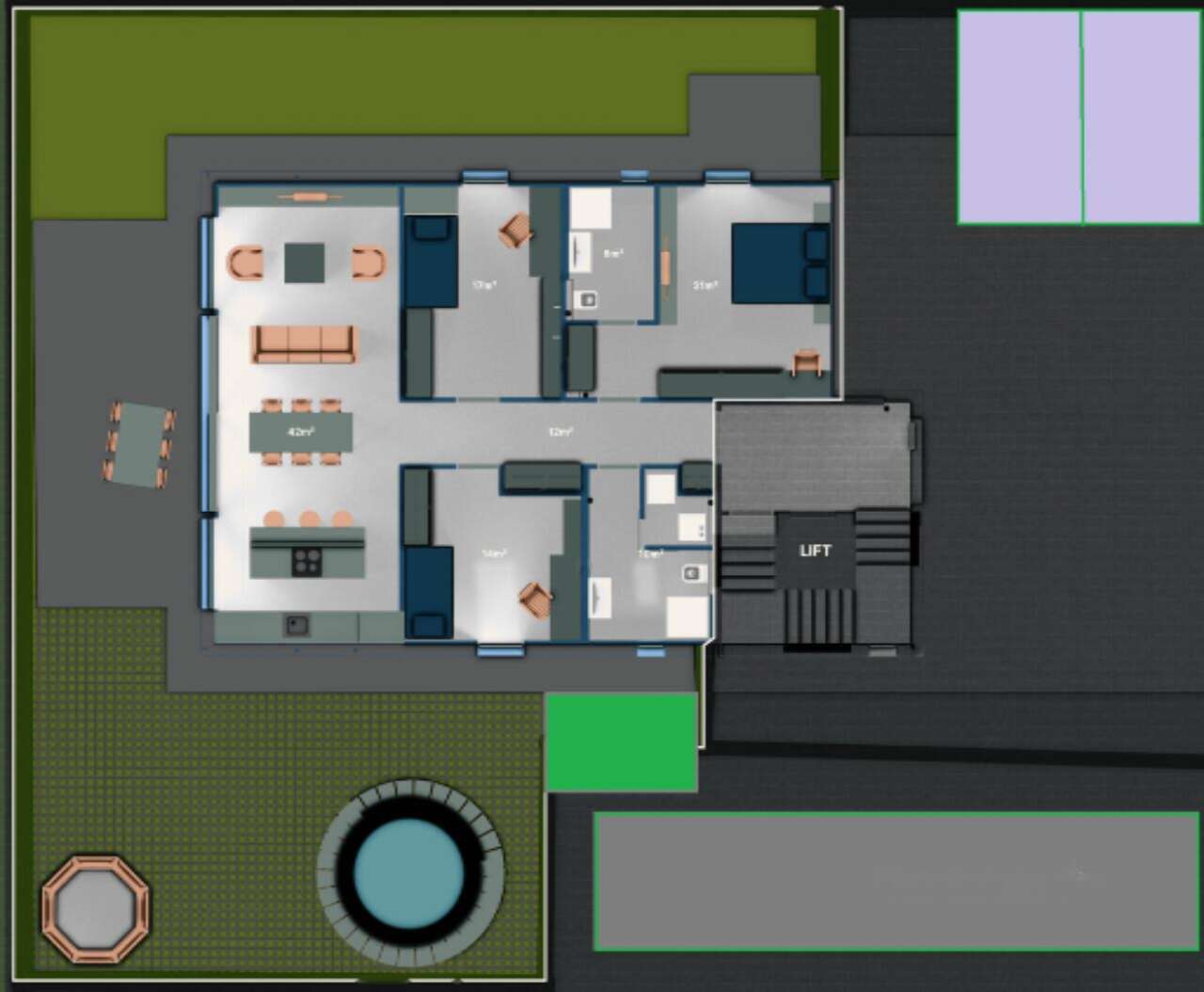 - Парковочные места: 41 м² (2 места с зарядными станциями для электромобилей)