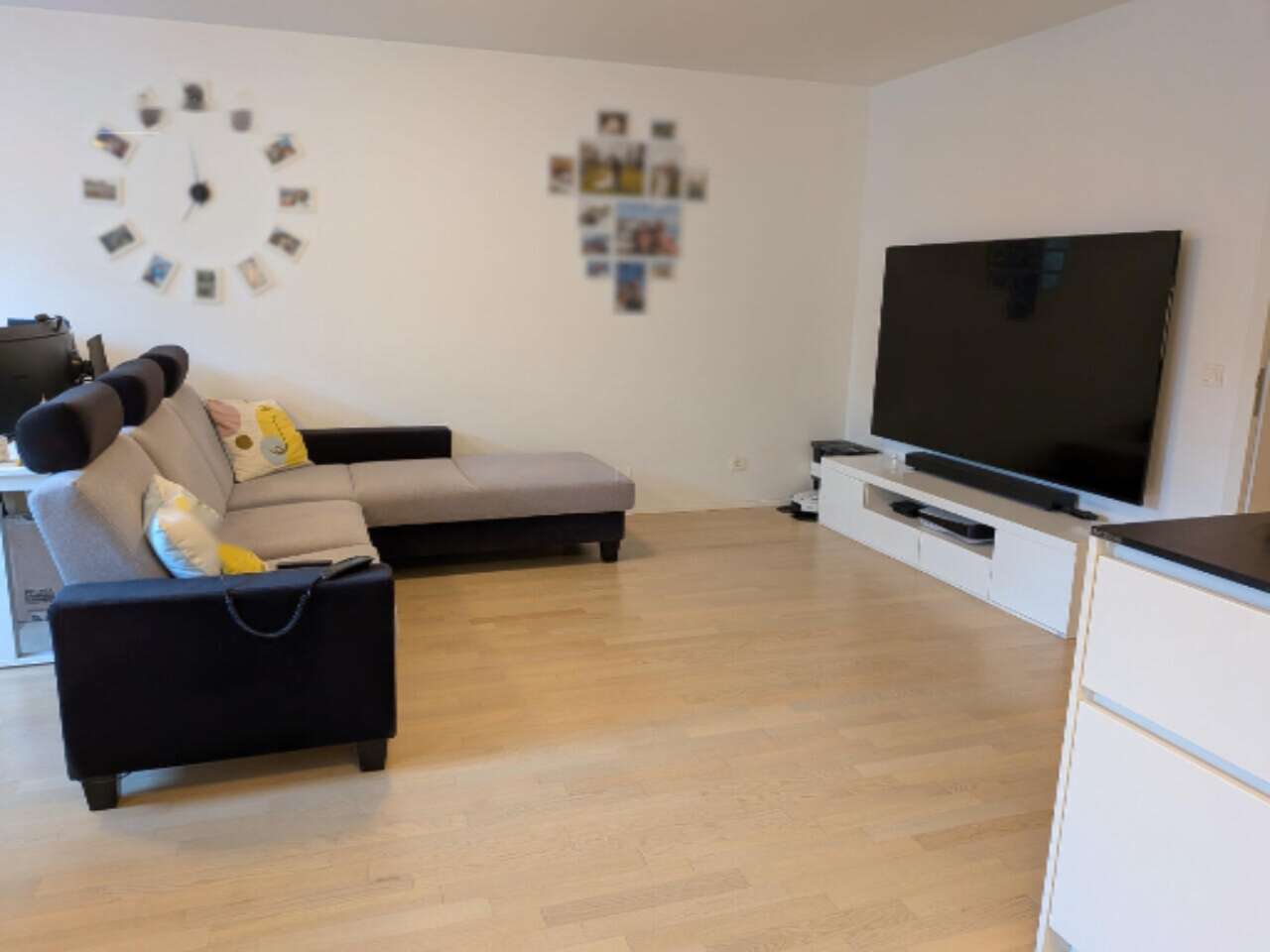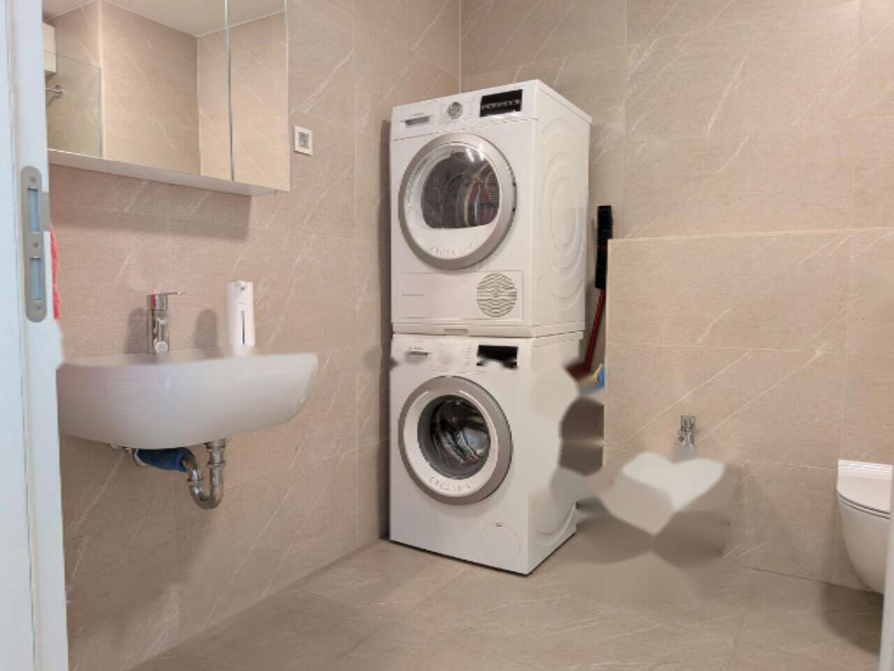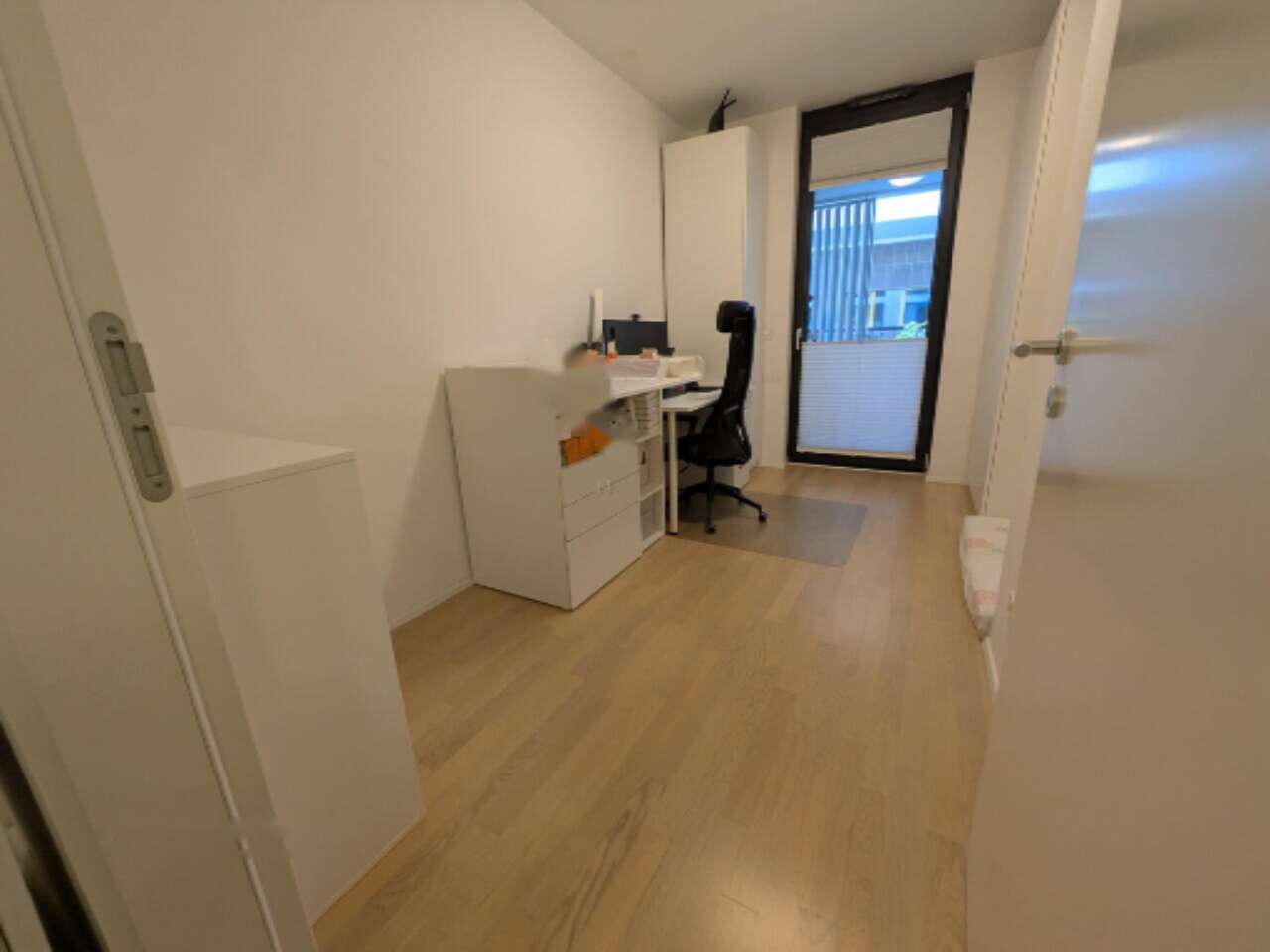 Жилое пространство включает просторную и светлую гостиную и кухню, оснащенную техникой Bosch. Также имеются спальня с встроенным гардеробом, детская комната и ванная с душем, комплектом стиральной и сушильной машин, а также биде. Холл и коридор оформлены встроенными шкафами на заказ. Кроме того, имеется небольшой кабинет с возможностью установки дополнительной ванной комнаты. Великолепная лоджия с кладовой добавляют дополнительную функциональность.