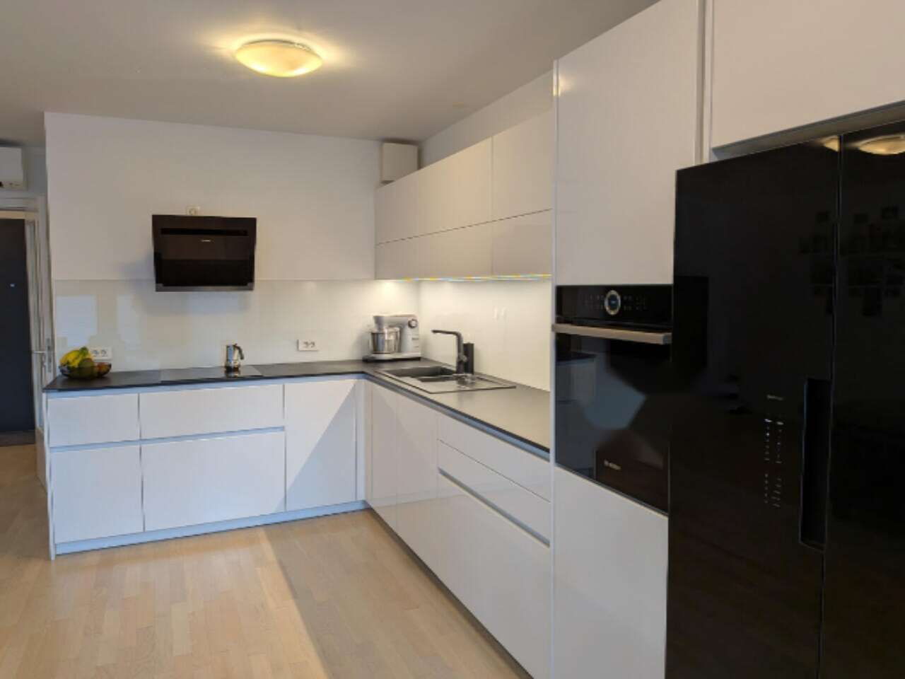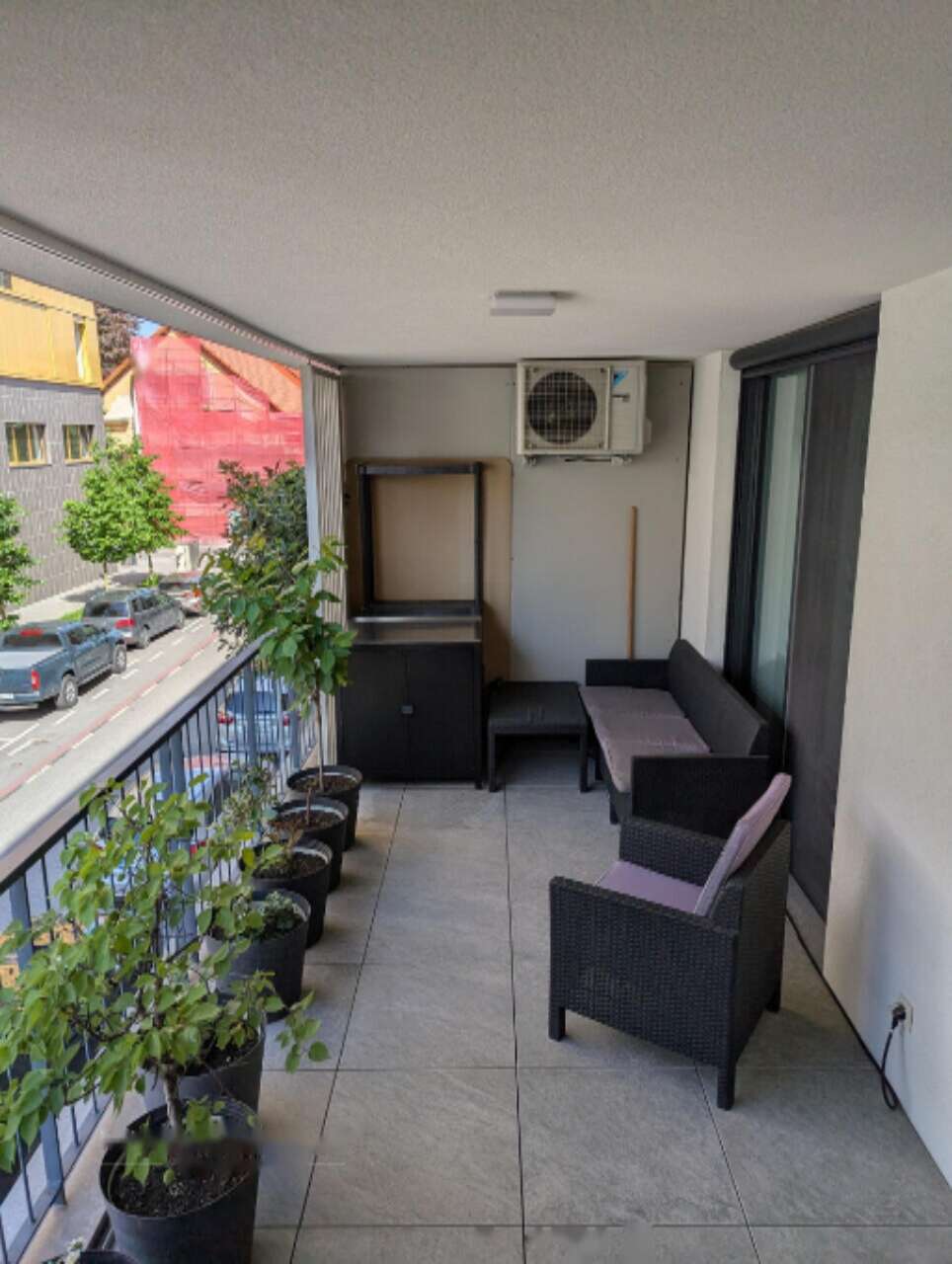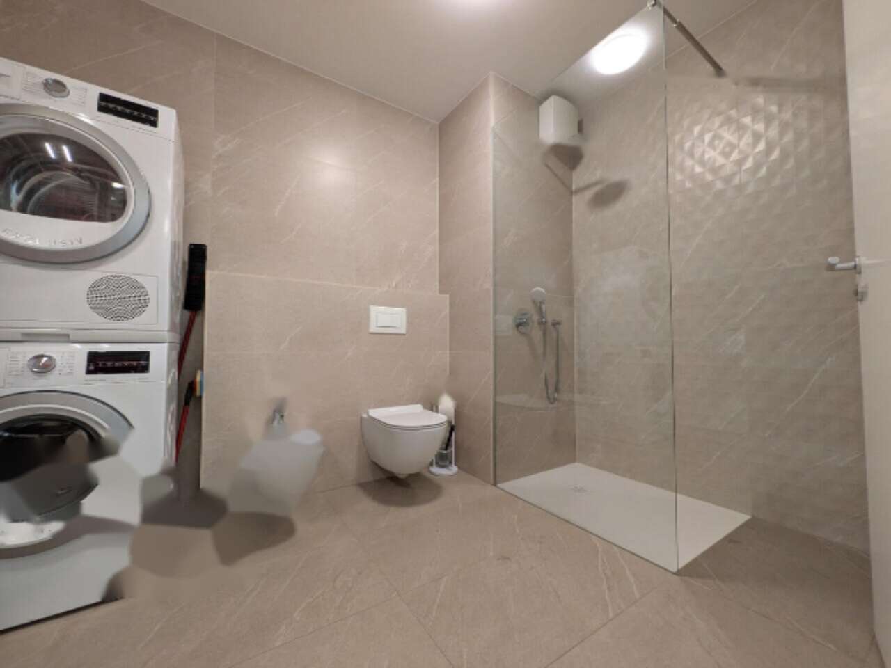 Среди других достоинств: место в гараже с зарядной станцией для электромобилей, лифт, позволяющий попасть в квартиру прямо из гаража, система теплого пола, кондиционеры Daikin, умное оснащение и оптоволоконная сеть. С террасы открывается потрясающий вид на Люблянский град и весь город. На территории комплекса есть комната для велосипедов и гимнастический зал.