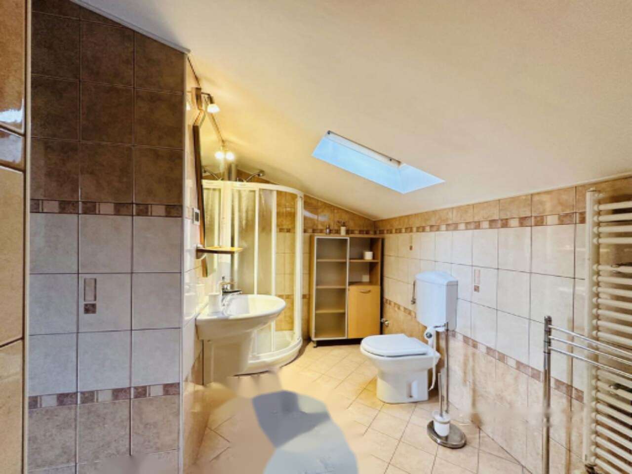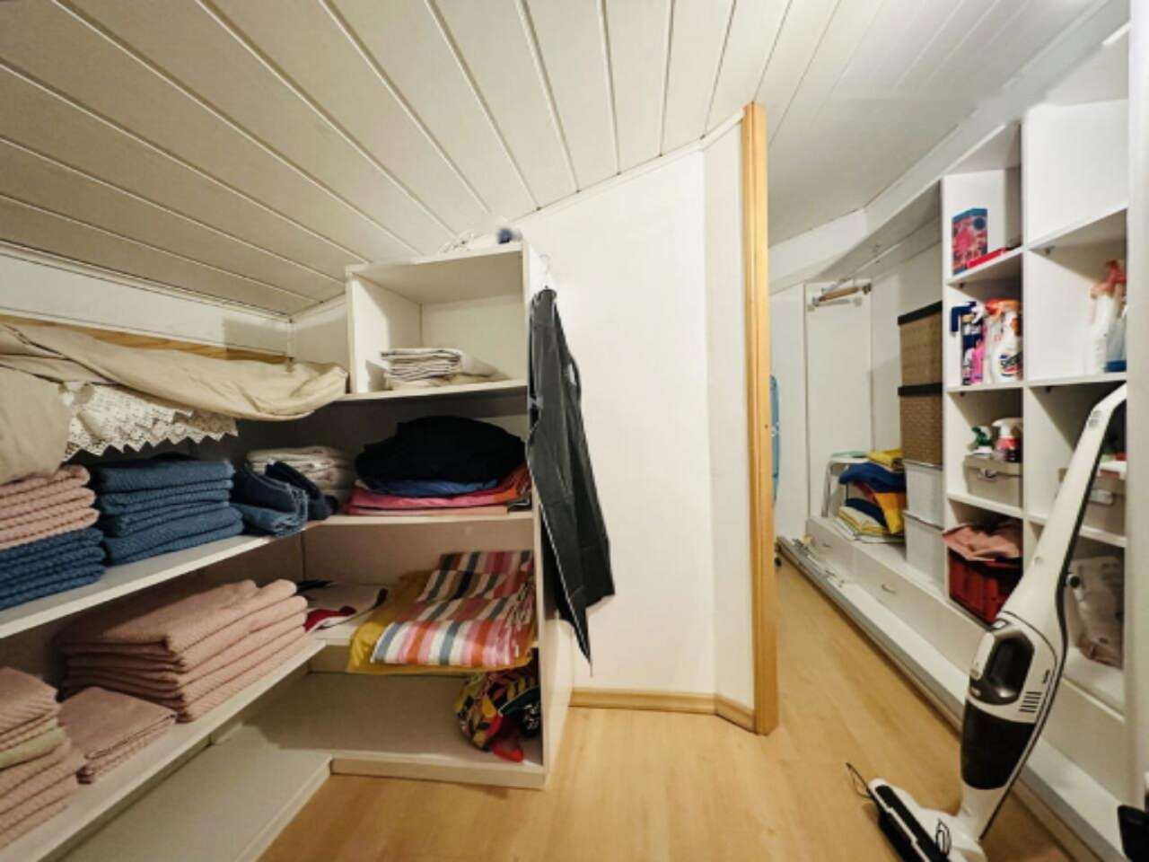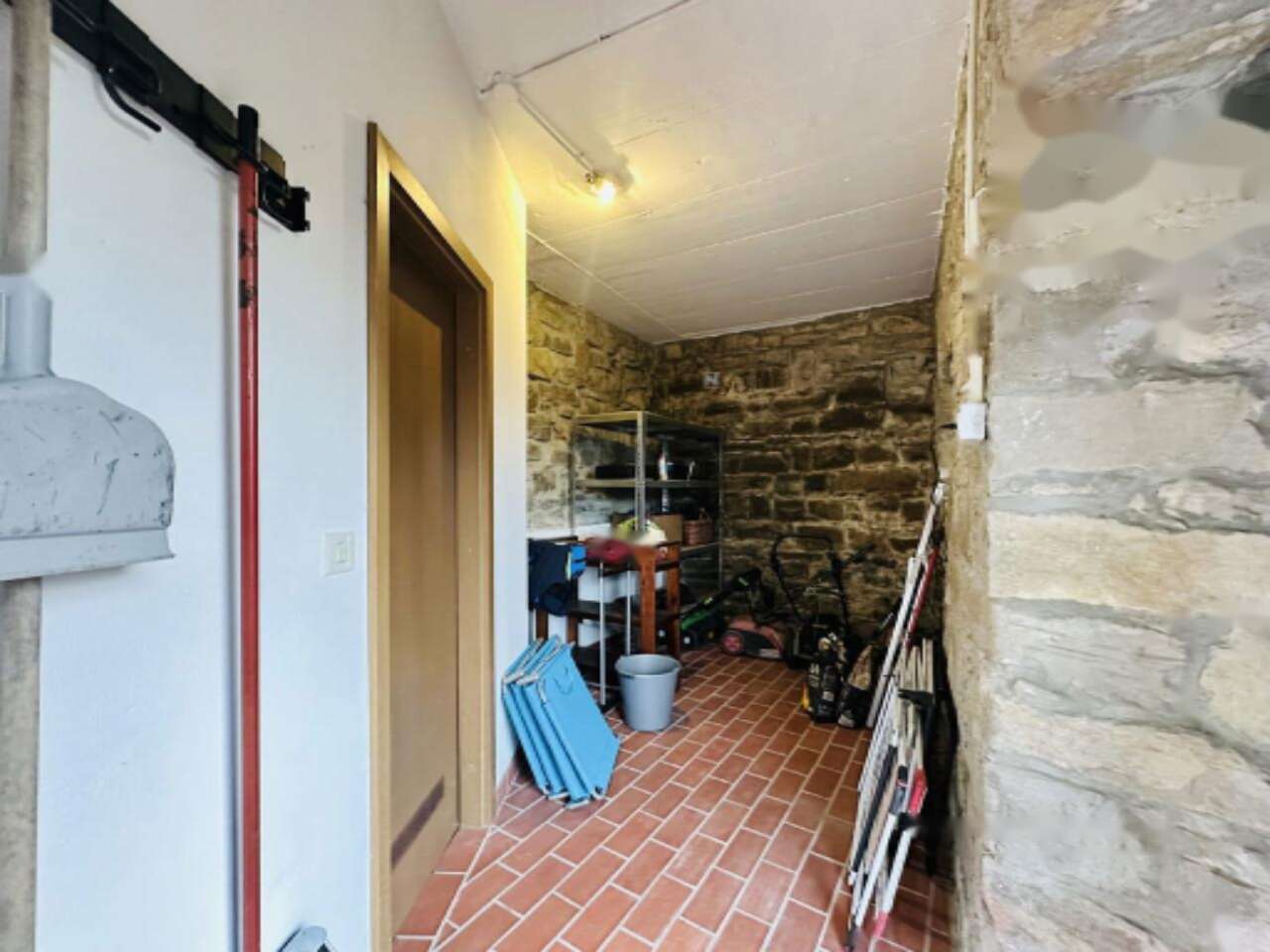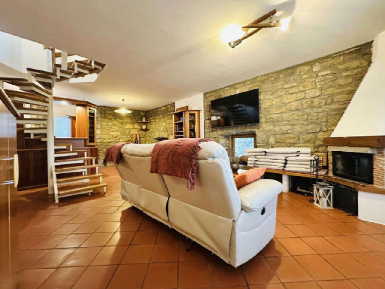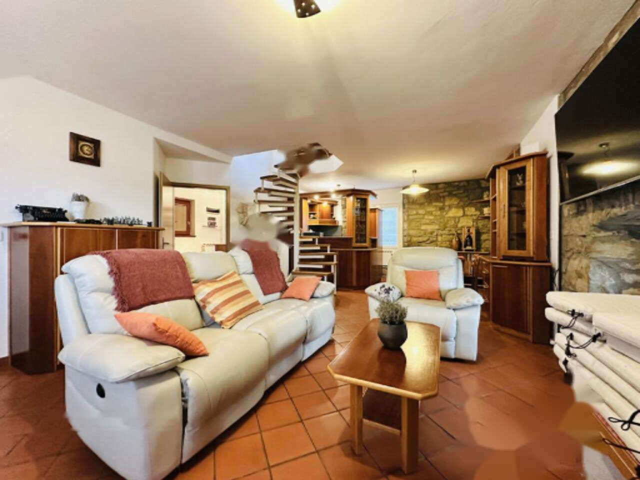 Внутри дома находится просторная гостиная, плавно переходящая в кухню и столовую, а также четыре спальни, две оборудованные ванные комнаты с туалетами, кладовая и хозяйственное помещение. В дополнение к этому, в доме есть балкон, терраса и подвал.