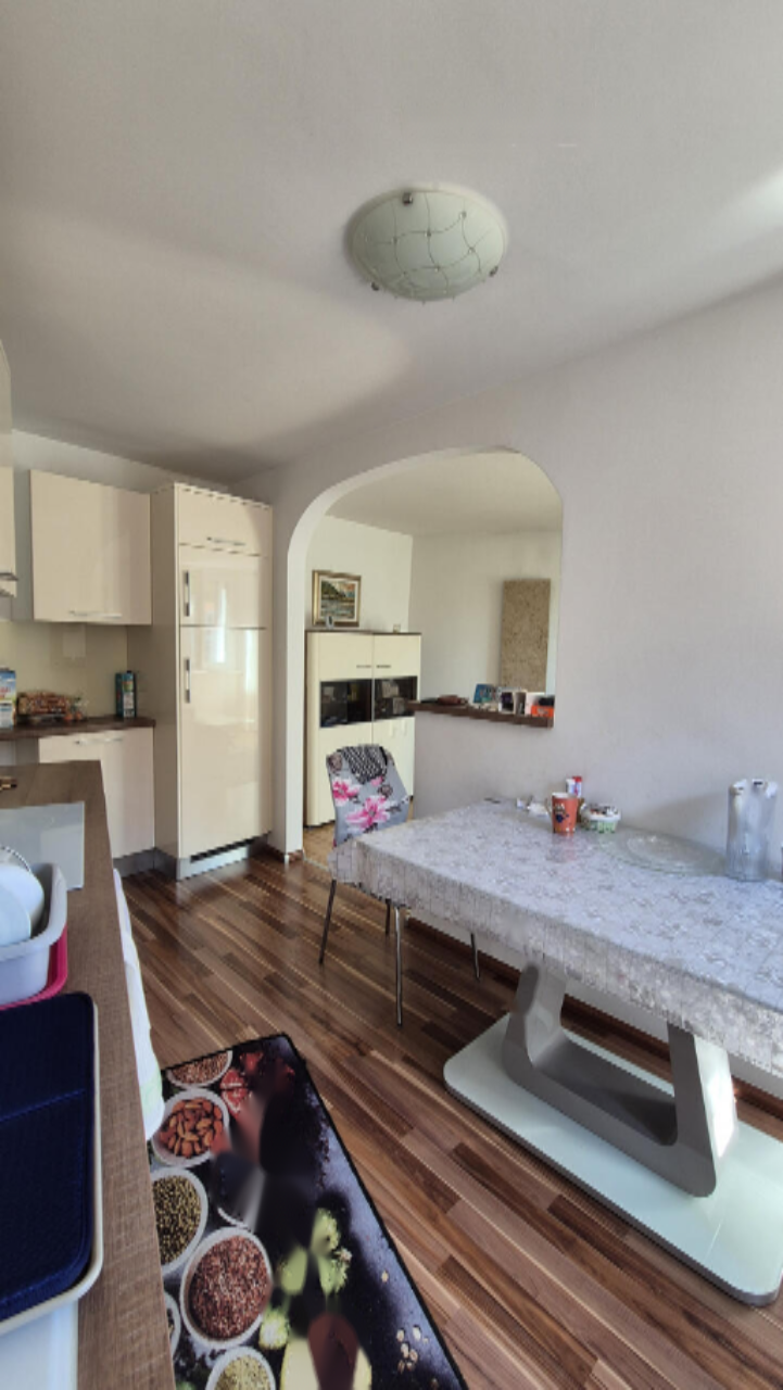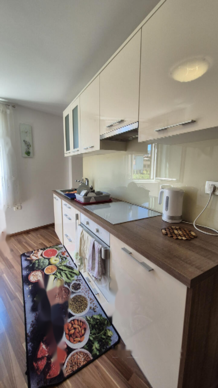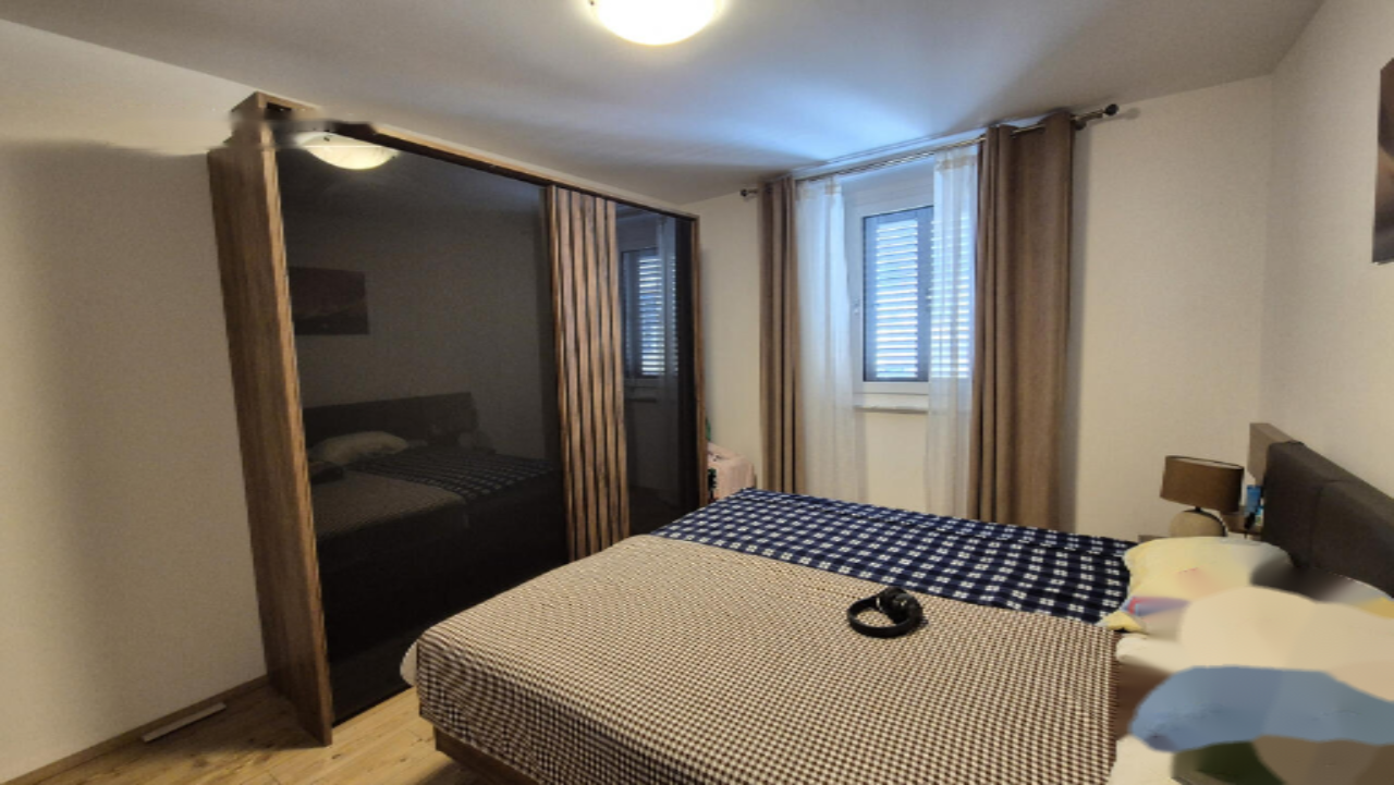Этот объект был модернизирован в 2019 году: заменены полы, полностью обновлена кухня и мебель, установлены трёхслойные окна с москитными сетками и ставнями. Собственная электрическая система отопления в сочетании с кондиционером позволяет поддерживать комфортный микроклимат круглый год. Гостиная и кухня с открытой планировкой создают идеальные условия для общения, а застеклённая лоджия станет отличным местом для отдыха. В квартире есть современная ванная комната, просторное хранение в кладовой 5 м² и две светлые спальни.