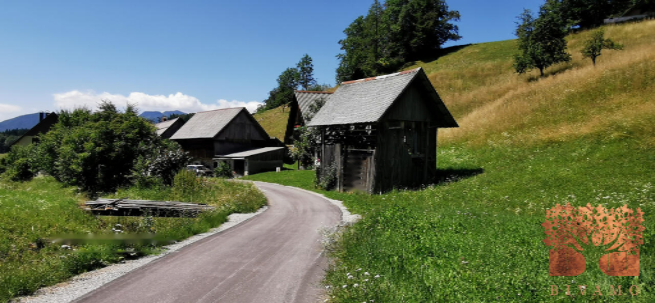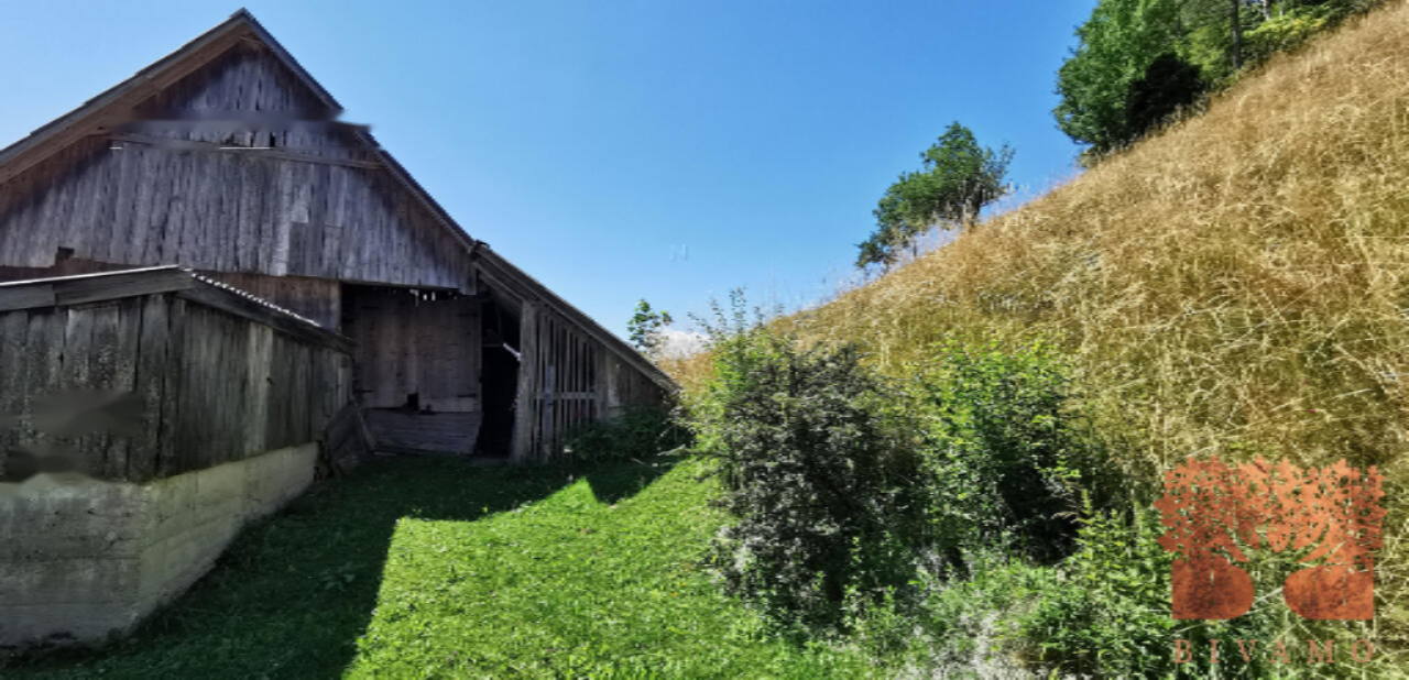 Эта собственность объединяет сельхозугодья и лесные площади с пастбищами и лугами. Объект нуждается в частичном ремонте, но не является объектом культурного наследия. Основное строение состоит из двух уровней, с первым этажом в 60 м² и доступным чердаком. Помимо этого, участок включает хозяйственное здание площадью 94 м², функционирующее как сарай и гараж, а также традиционный словенский «топлар» для хранения сена. Отопление осуществляется на дровах и угле. На чердаке сохранилась подлинная коптильня ("рафкамра"), которая использовалась до недавнего времени.
