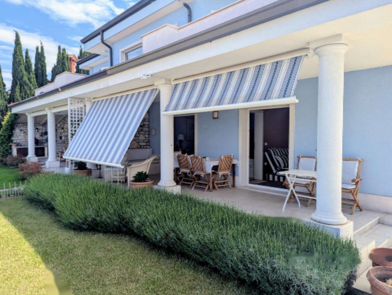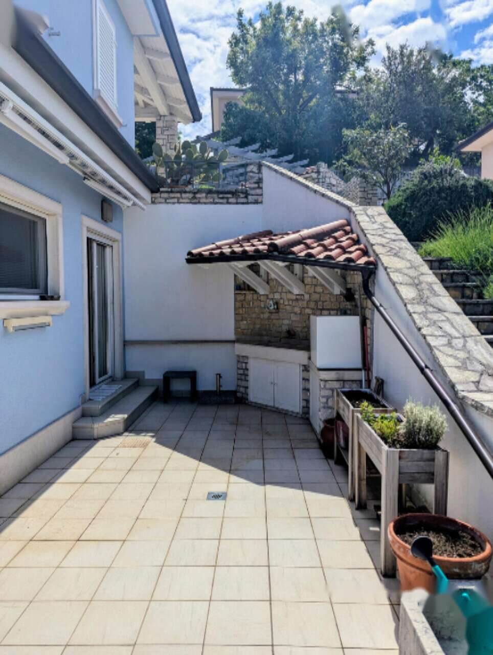 На улице обустроено просторное мощёное место с летней кухней, оснащённой электроплитой, раковиной и грилем, что позволяет наслаждаться комфортным отдыхом на свежем воздухе. Общественный бассейн дополняет изящество и комфорт жизни в этом регионе.