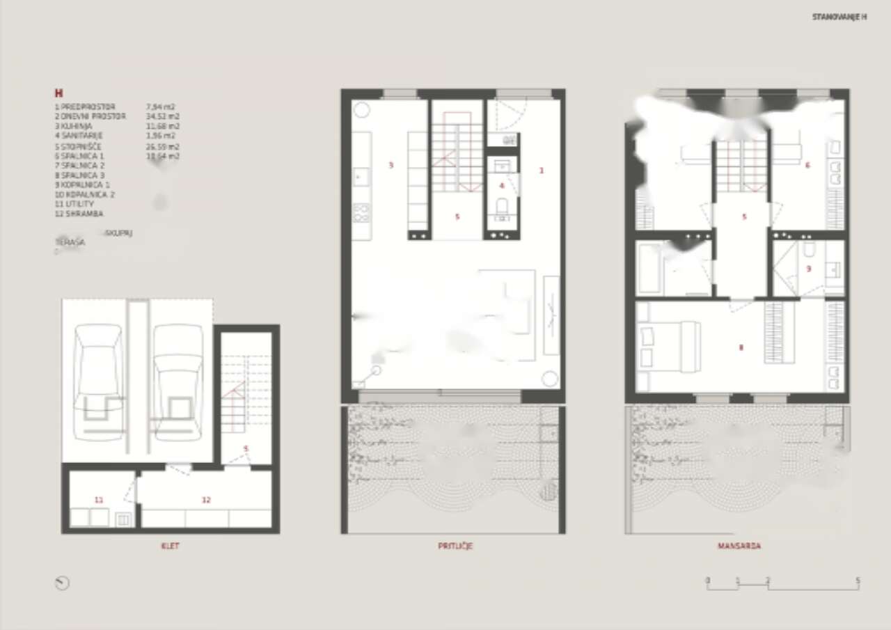 Дом, площадью 203,2 м², включает подвал, первый этаж и мансарду. Из панорамных окон открываются живописные виды на Бледский замок и величественные Юлийские Альпы. Интерьеры этого дома создают гармонию между уединением и открытым пространством. Просторные и залитые светом комнаты, камин для создания уюта, а также выход на террасу, превращают этот дом в идеальное место как для жизни, так и для отдыха.