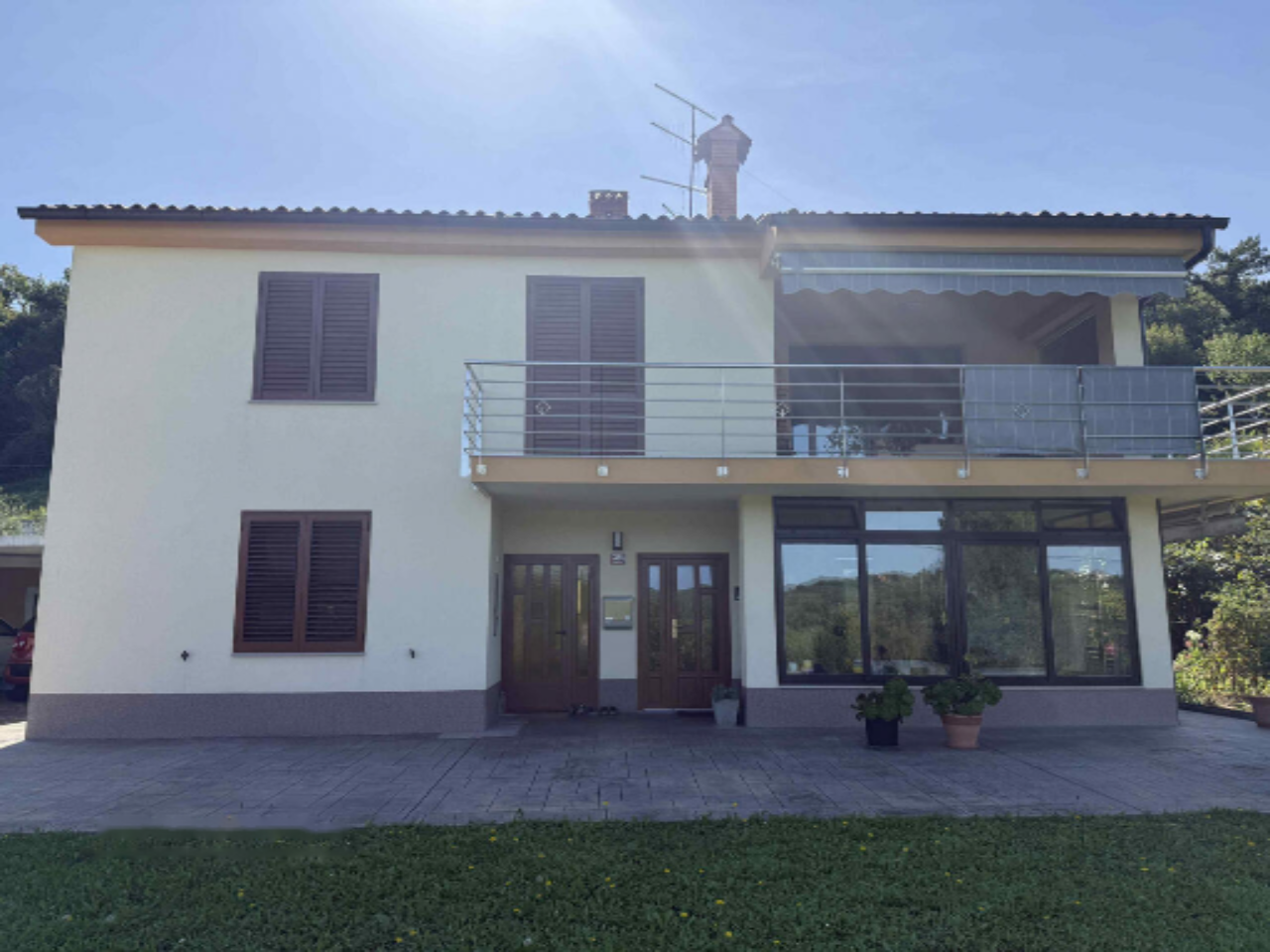 Дом был возведен в 1973 году и подвергся значительной реконструкции в 2018 году, когда обновили систему отопления и фасад. Недвижимость подключена к собственным коммуникациям: имеется автономное водоснабжение и электроэнергия. Жилье также включает частично крытый балкон размером 30 м², который соединяется с дополнительными помещениями в мансарде.