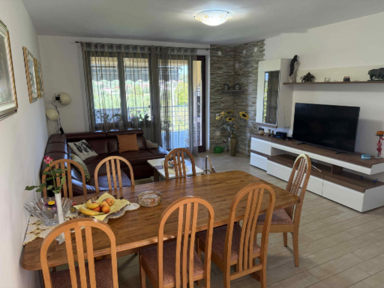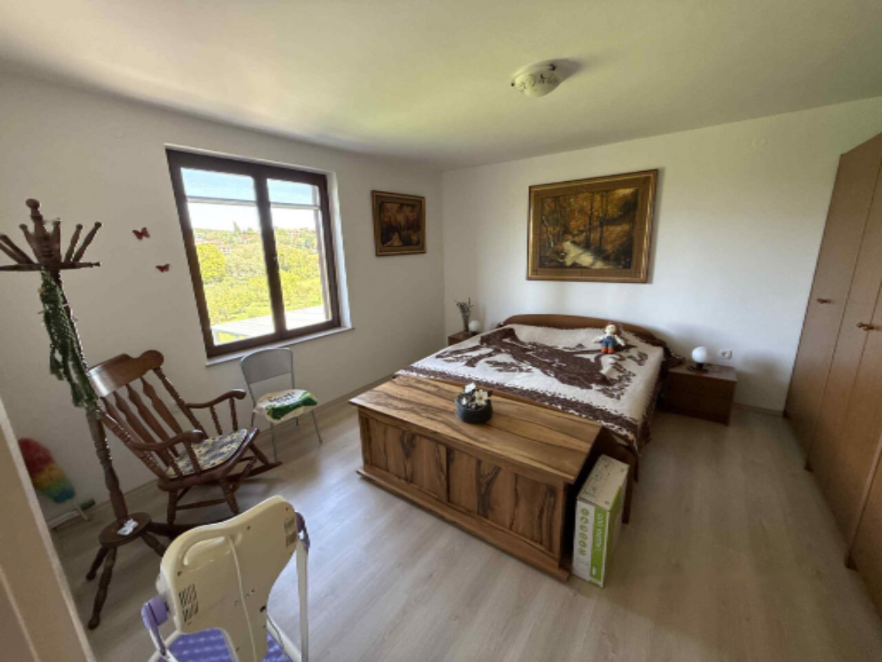Предлагается для продажи просторная квартира с пятью комнатами в живописном уголке Ванганель, всего в четырех километрах от города Копер. Расположенное на верхнем этаже двухэтажного здания, жилье имеет общую площадь 143 м². Викторией жилья является отдельный вход и развитые удобства для комфортабельного быта, включая теплые полы и тепловой насос, а также два кондиционера для поддержания оптимального климата.