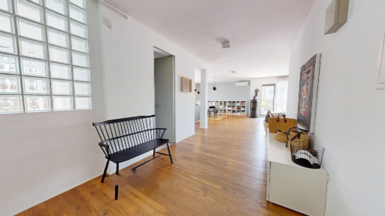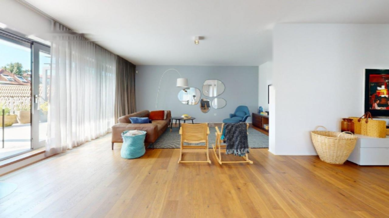 Квартира тщательно спланирована: в ней отдельно выделены жилая и спальная зоны, а благодаря большим окнам помещения наполнены светом. Пентхаус занимает целиком верхний этаж небольшого здания с тремя квартирами и включает в себя: