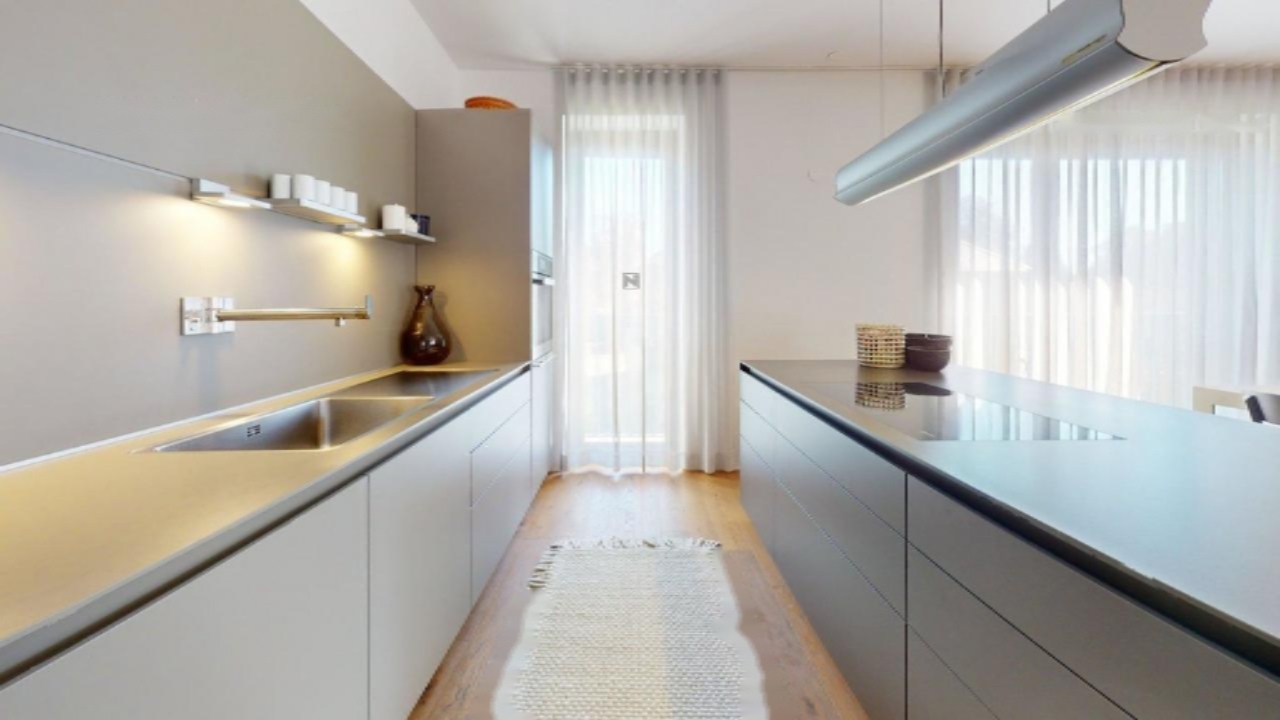 Стеклянные двери Rimadesio с невидимыми рамами, оливковый паркет Listone Giordano, керамическая плитка Mutina, а также сантехника от Gessi, Flaminia и Catalano подчеркивают высокое качество отделки. Пентхаус предлагается частично или полностью меблированным, включая эксклюзивную кухню Bulthaup и технику Miele. Комфорт жильцов обеспечивают кондиционер и автономное газовое отопление, а в гостиной установлен камин. Кроме того, есть возможность установить солнечные панели на крыше.