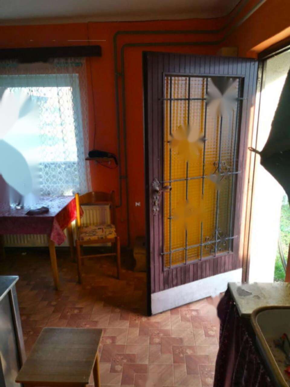 В доме есть такие помещения: прихожая, кухня, гостиная, две спальные комнаты и кабинет, временно используемый как кладовка, а также ванная с туалетом. Отопление обеспечивается комбинированным котлом на жидкое топливо и дрова.