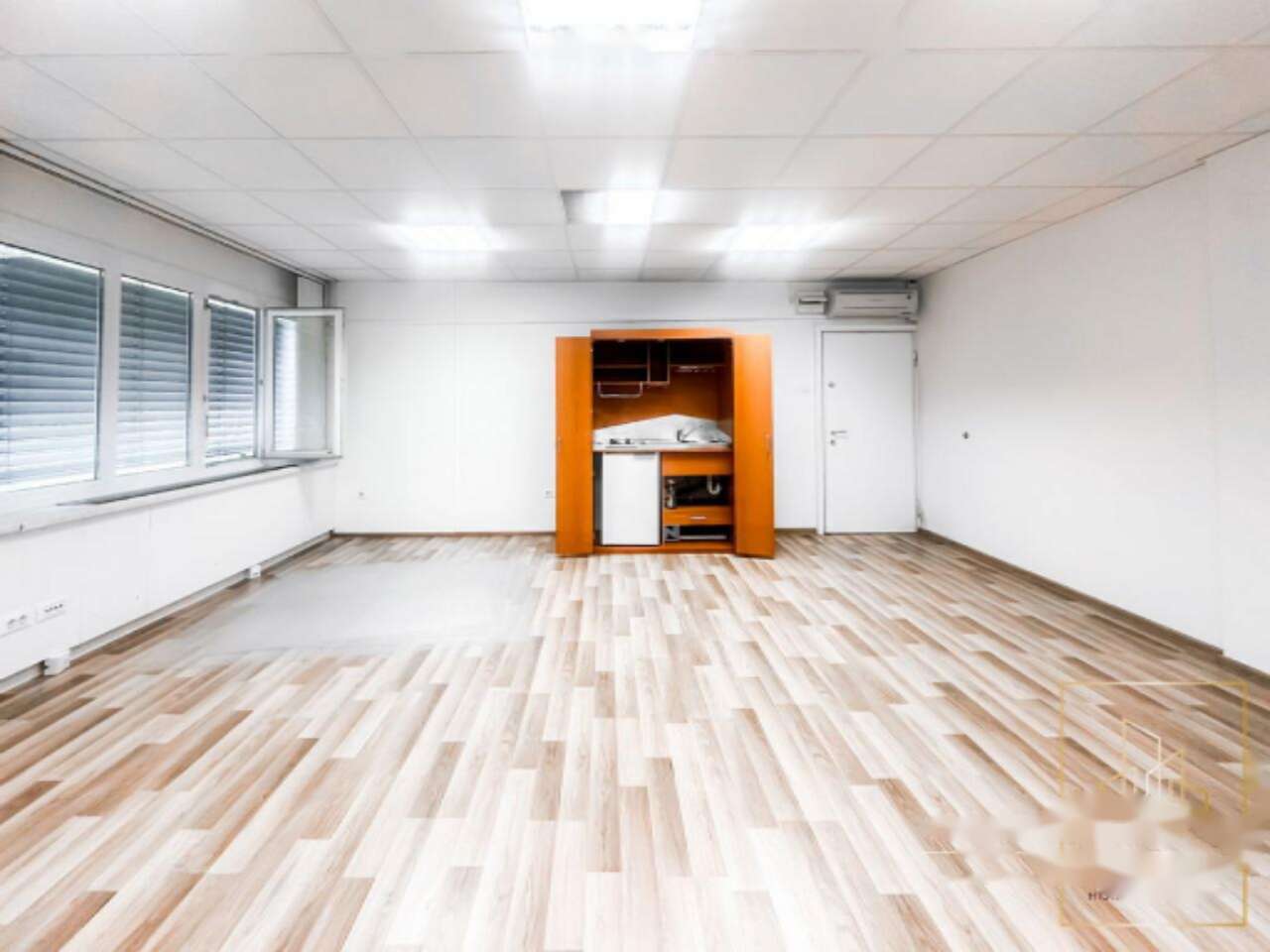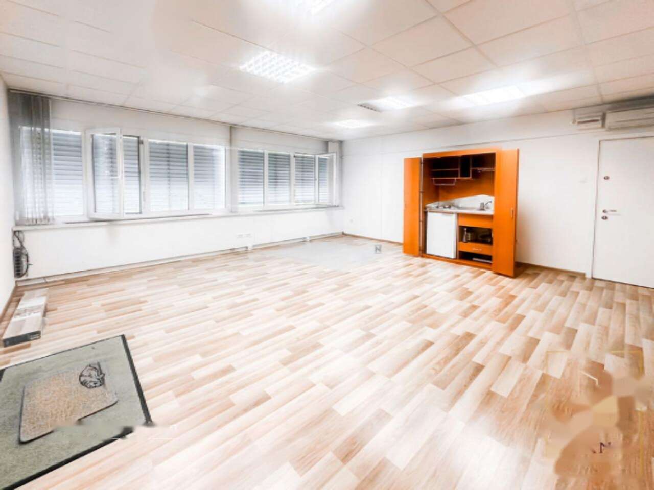 Прочная архитектура позволила создать удобное планирование помещения. В нем расположены центральная зона с встроенной мини-кухней и отдельный кабинет, идеально подходящий для руководителя или индивидуальной работы. Общие санитарные комнаты ухожены и регулярно обслуживаются. В 2021 году была обновлена крыша. Помещение характеризуется низкими эксплуатационными затратами, что является плюсом для долгосрочного ведения бизнеса. Здание поддерживается в хорошем состоянии.