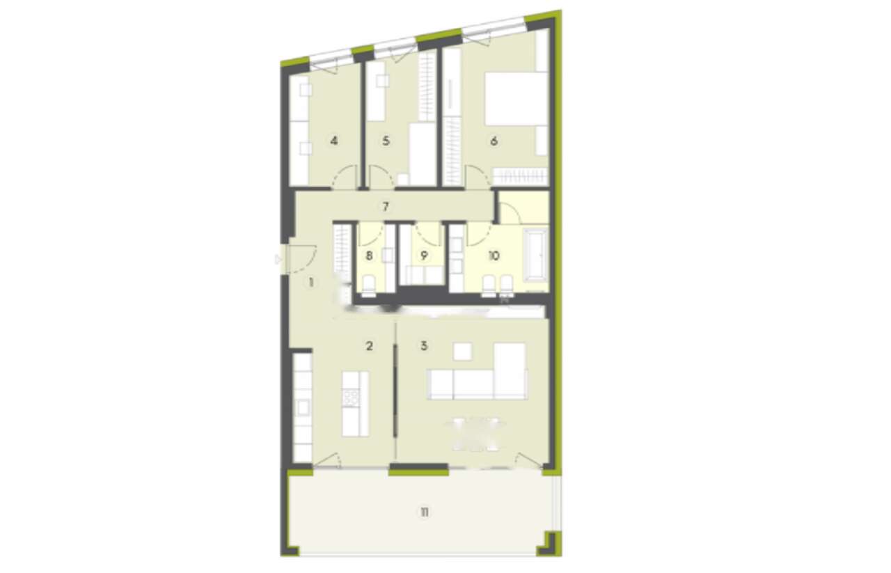 В центре района Бежиград современный жилой комплекс предлагает покупателям просторную четырехкомнатную квартиру. Проект "Резиденция Бежиград Топнишка", созданный знаменитыми архитекторами из SONO, восхищает современным архитектурным стилем, высокими стандартами энергоэффективности и удобной планировкой, обеспечивая комфорт для проживающих людей всех возрастов.