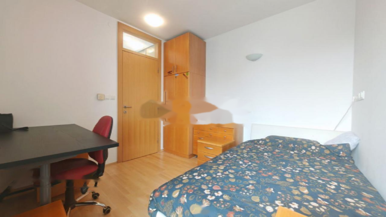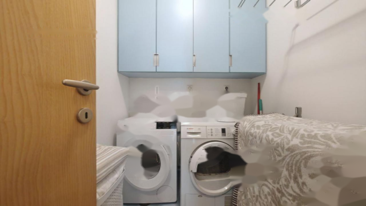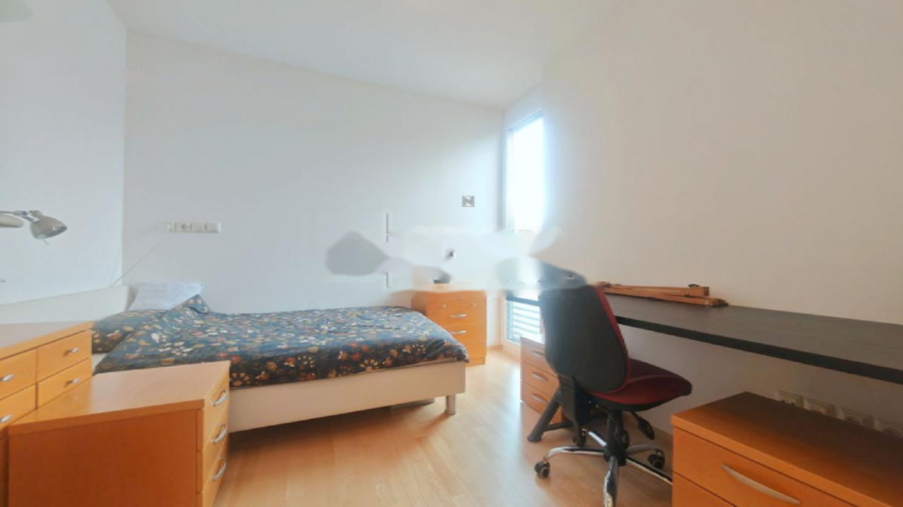Функциональное планирование квартиры включает в себя просторную гостиную с кухонной зоной и зоной для обеда (примерно 40 м²), холл с встроенными шкафами, четыре спальни, прачечную и обширную ванную комнату с ванной и душевой кабиной. Высокие потолки (2,7 м) придают дополнительное чувство простора. В дополнение к этому, у вас будет отдельный гараж (14,32 м²) и парковочное место (15 м²), а также общая кладовая, соединенная с гаражом (5,01 м²). Для гостей предусмотрена бесплатная парковка на территории комплекса.