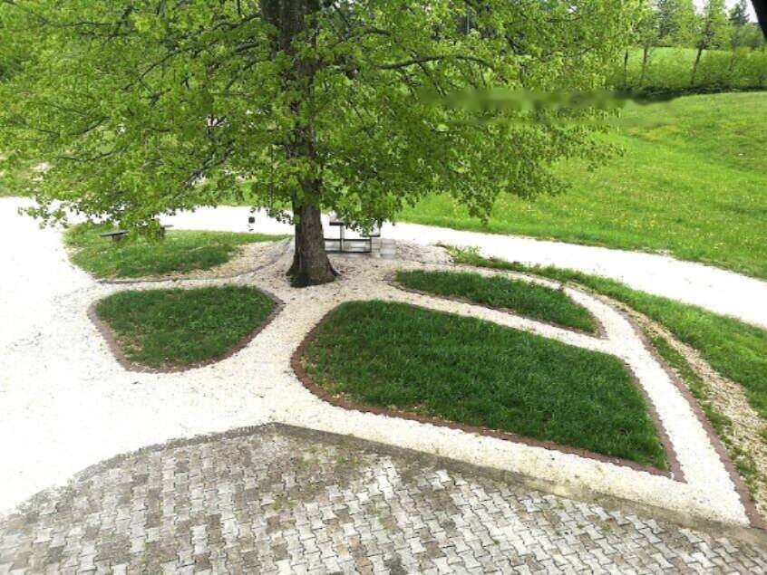 Дом, известный своим уникальным стилем и ухоженной территорией, утопает в зелени. На участке есть небольшой сарай для хранения инструментов, дровяник, сад с фруктовыми деревьями и кирпичный гриль с зоной отдыха. Спереди дома раскинулась величественная липа с уютным местом для отдыха в её тени.