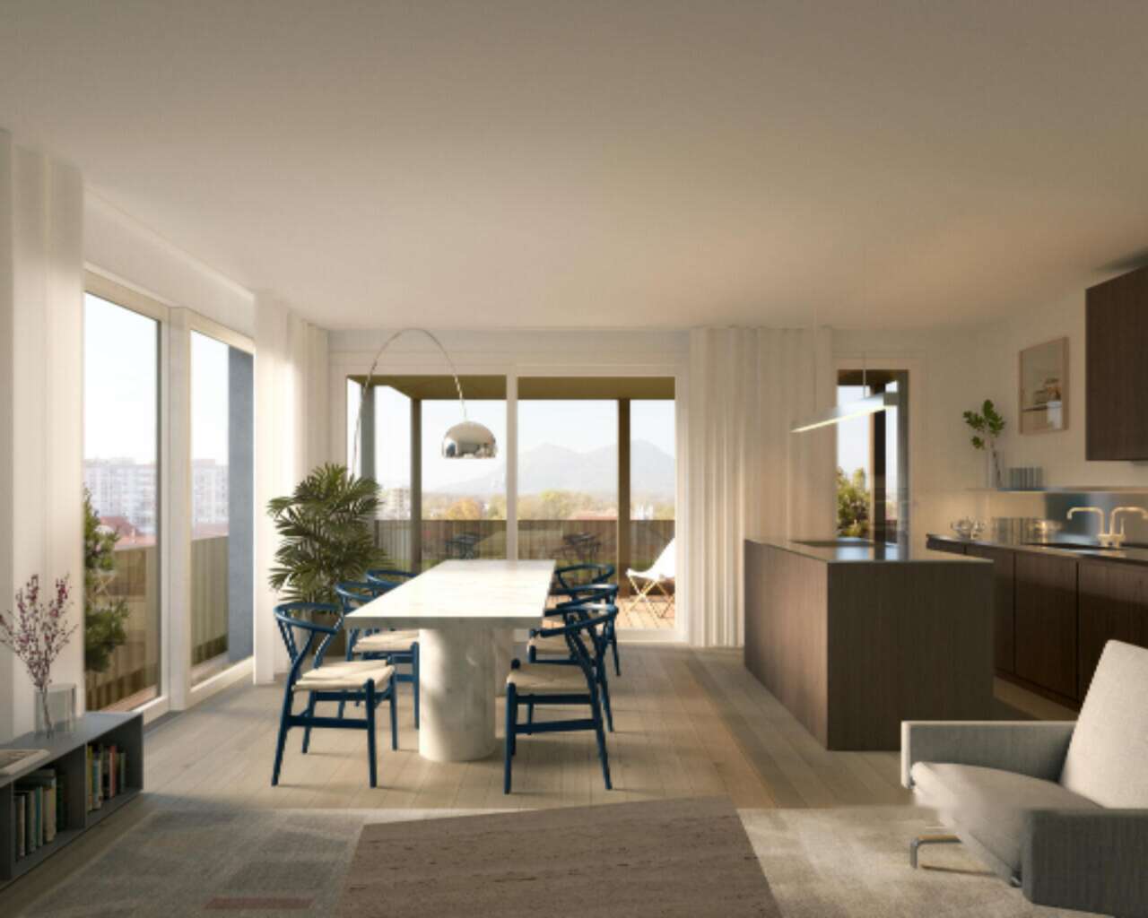 Эта четырехкомнатная квартира в новом здании расположена на четвертом этаже первого террасы. Жилая площадь составляет 90,1 м², к которой прибавляется просторная терраса площадью 40,2 м², которая позволяет наслаждаться потрясающими видами и проводить время на свежем воздухе . В квартире имеется кладовая площадью 4 м².