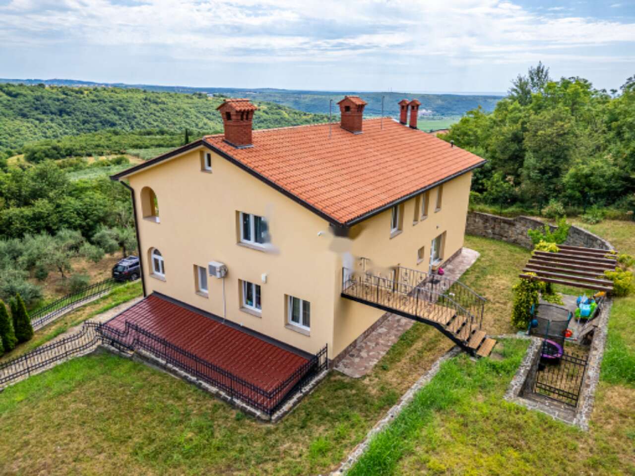 Предлагаем вашему вниманию трехуровневый дом в Кортах, недалеко от Изолы, построенный в 2007 году с общей площадью 424,4 квадратных метра и расположенный на участке размером 1443 квадратных метра. Эта полностью изолированная резиденция дарит частичный вид на море и становится отличным выбором для большой семьи или использования в туристических целях. Каменные подпорные стены окружают строение, которое может похвастаться множеством уникальных деталей, таких как три независимых жилых блока.