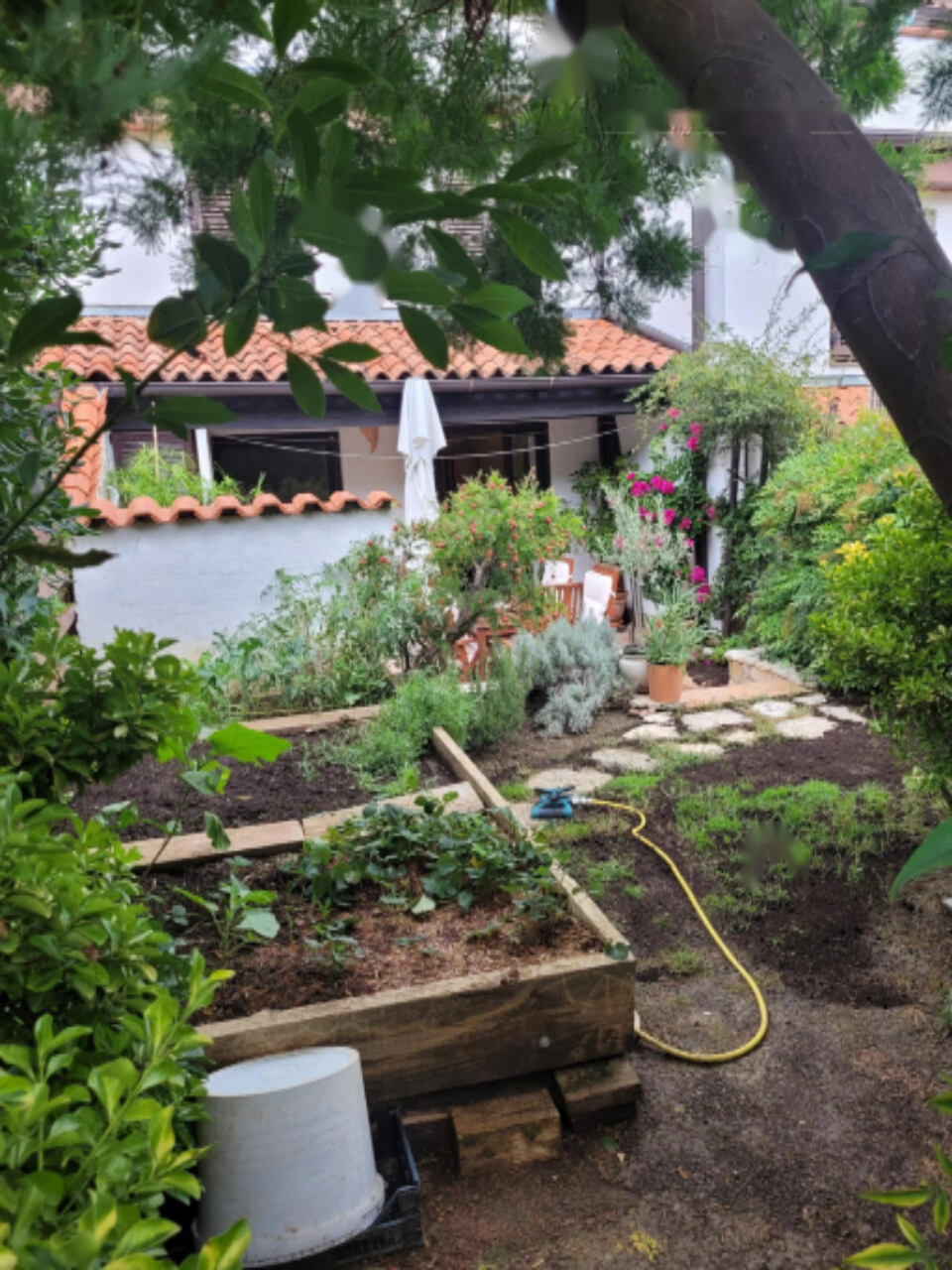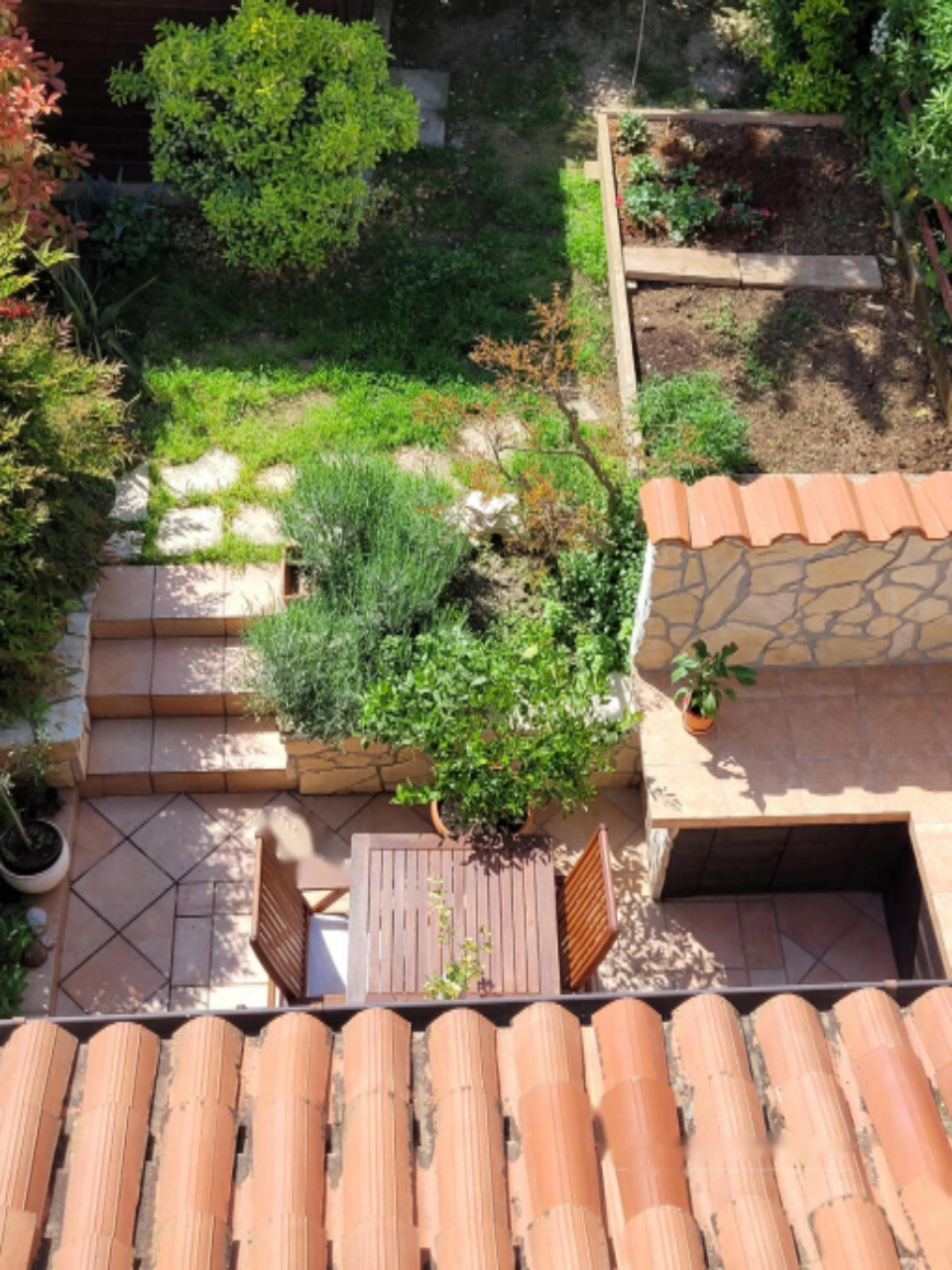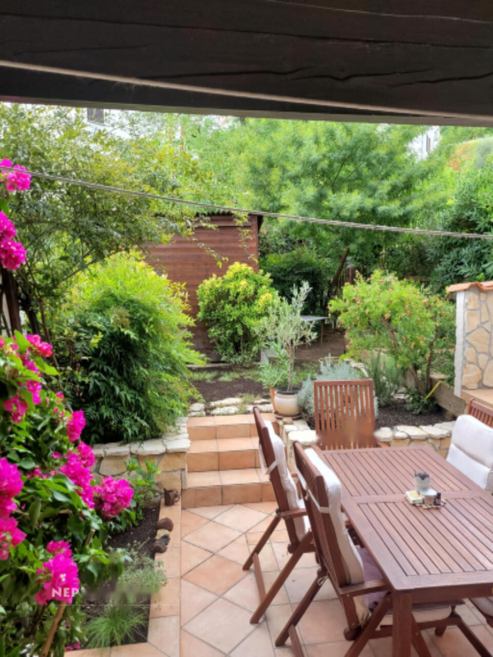 Наслаждаться свежим воздухом можно на 30 м² террасе с летней кухней. Ухоженный сад, украшенный зелёными насаждениями и деревянным домиком, дополняет жемчужину этого места. Дом предоставляет идеальные условия для семейной жизни и позволяет заниматься выращиванием свежих овощей.