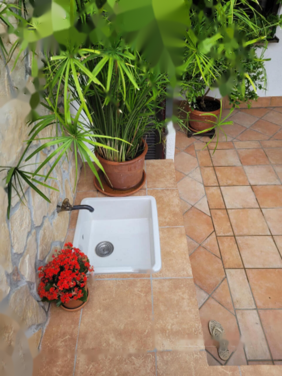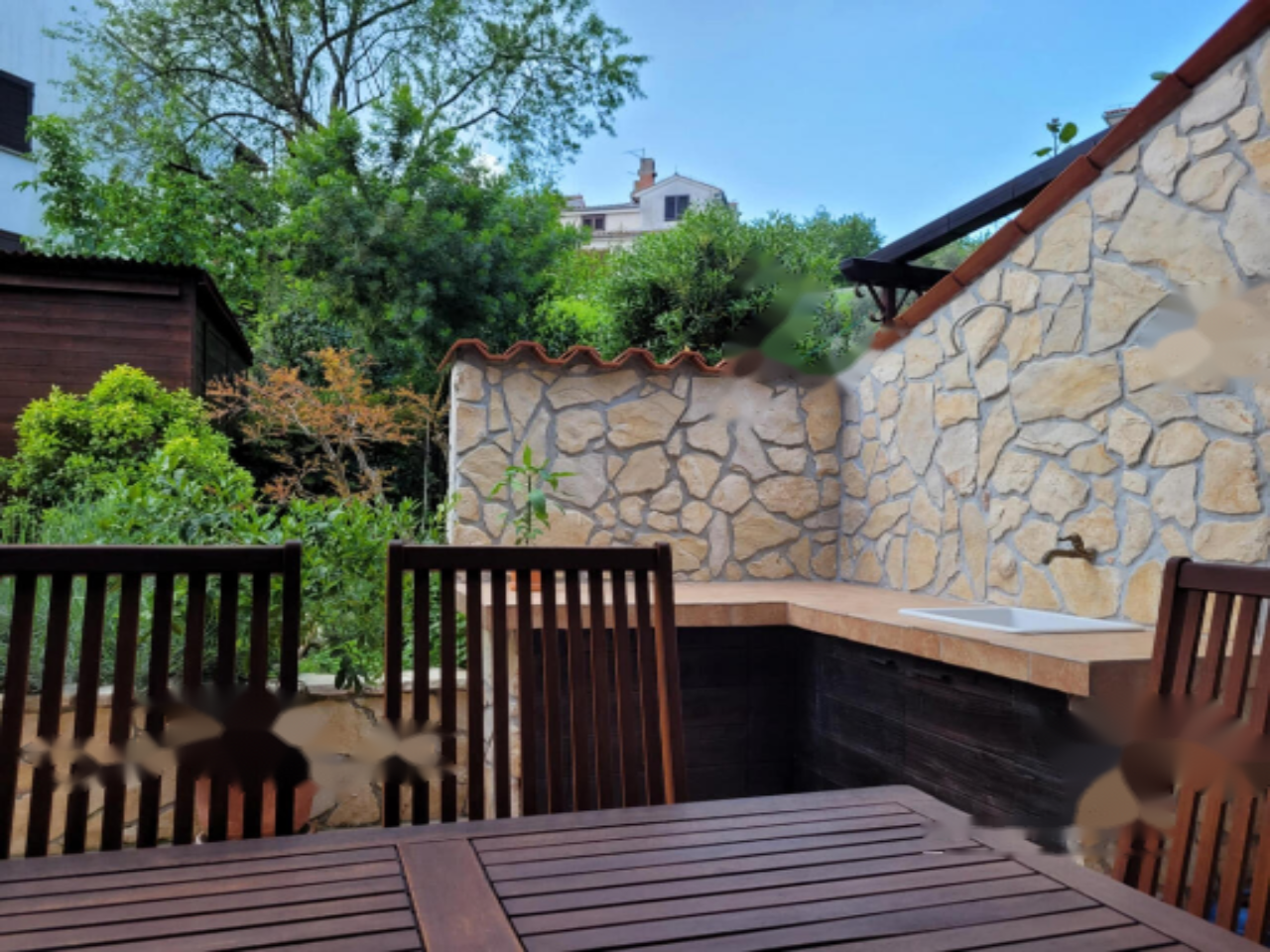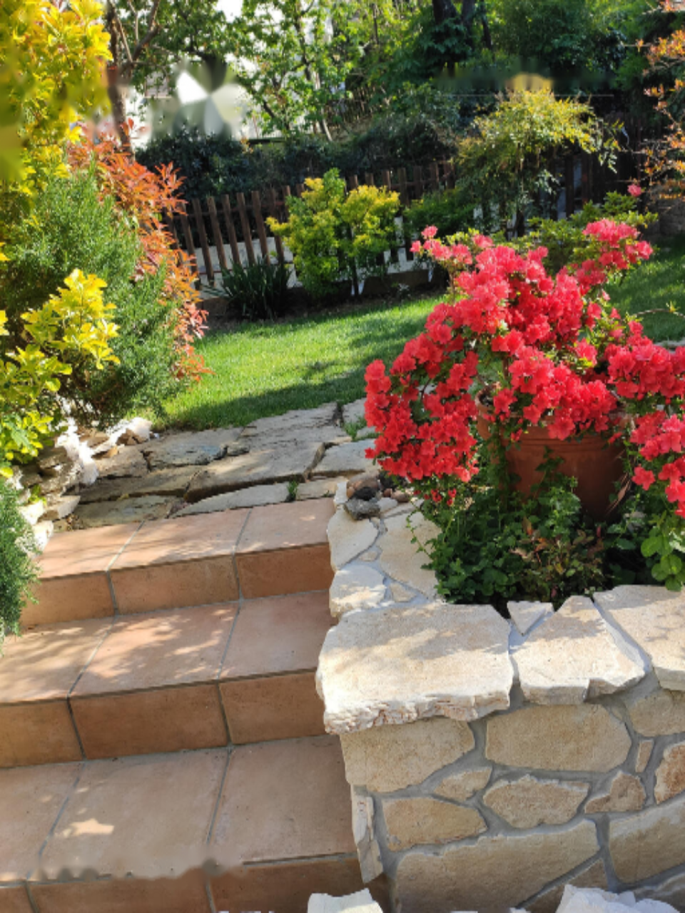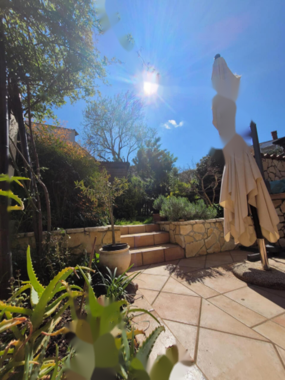 Наслаждаться свежим воздухом можно на 30 м² террасе с летней кухней. Ухоженный сад, украшенный зелёными насаждениями и деревянным домиком, дополняет жемчужину этого места. Дом предоставляет идеальные условия для семейной жизни и позволяет заниматься выращиванием свежих овощей.