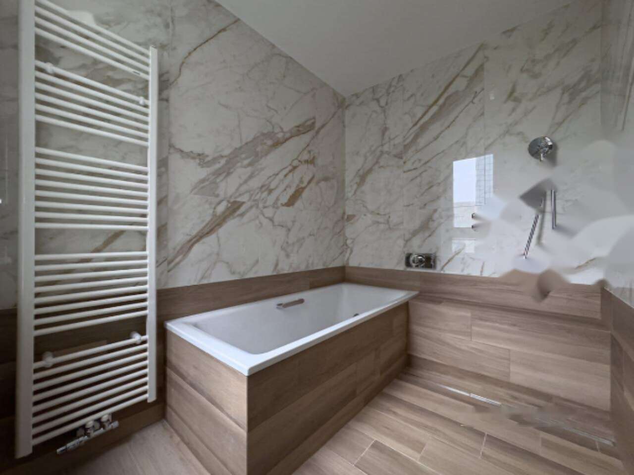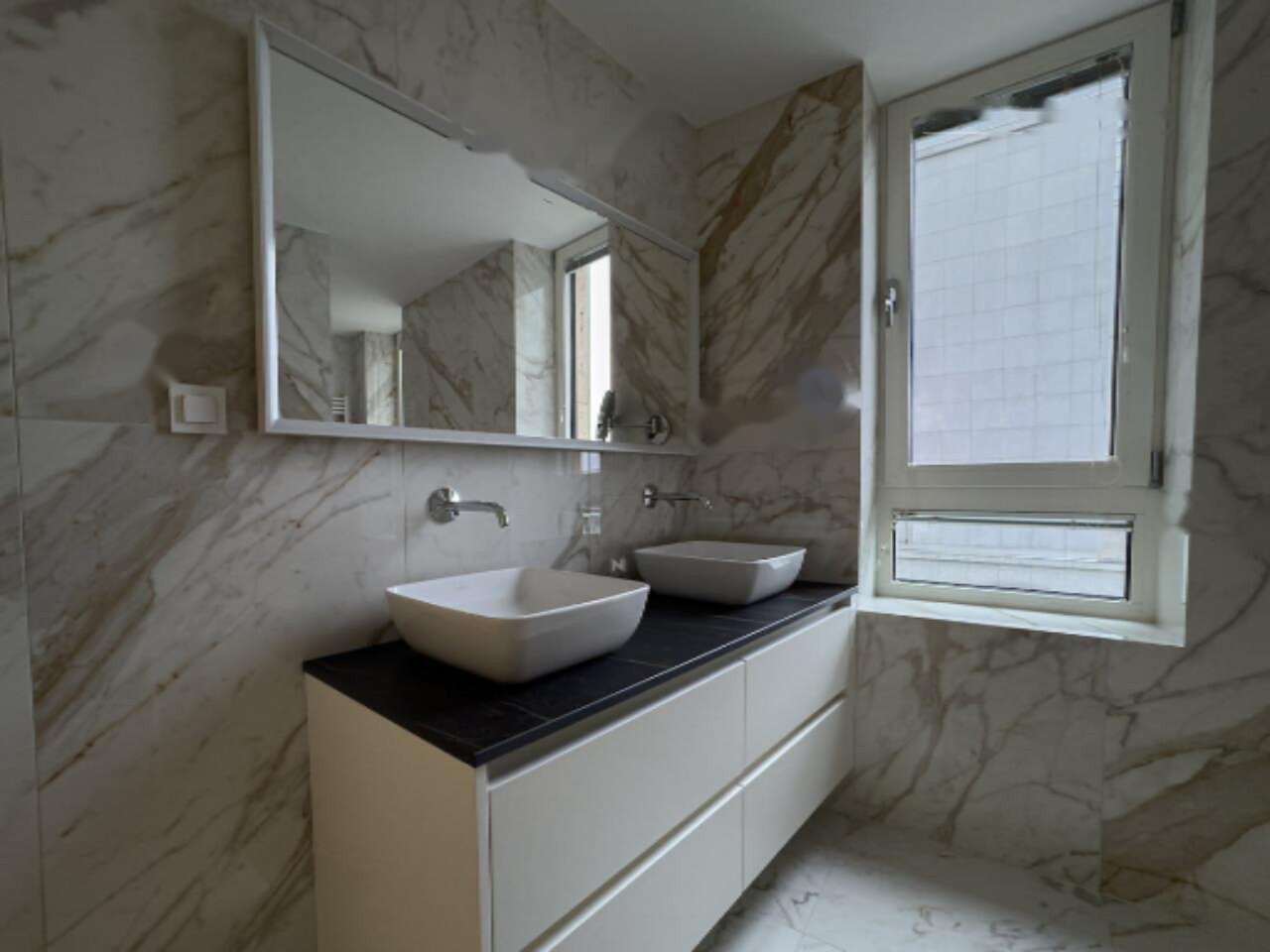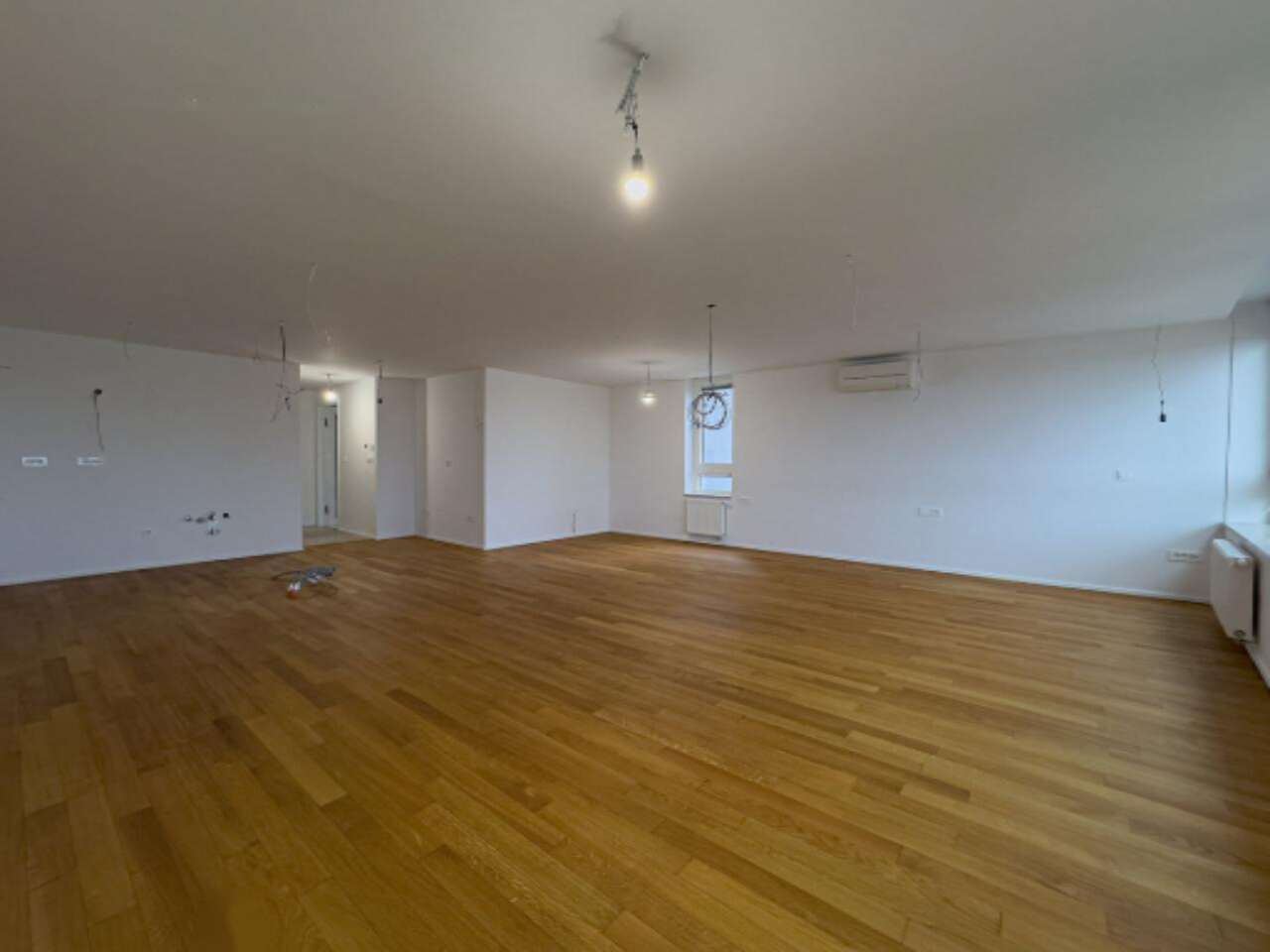 Площадь квартиры составляет 75 м², и она отличается удобной планировкой с возможностью гибкого использования пространства. В настоящее время она включает просторно оформленную центральную жилую зону площадью 60 м², уютную ванную комнату и терапевтические подсобные помещения. Центральная зона может быть преобразована в отдельную спальню, при этом большие окна обеспечивают свет и великолепный вид на восток.