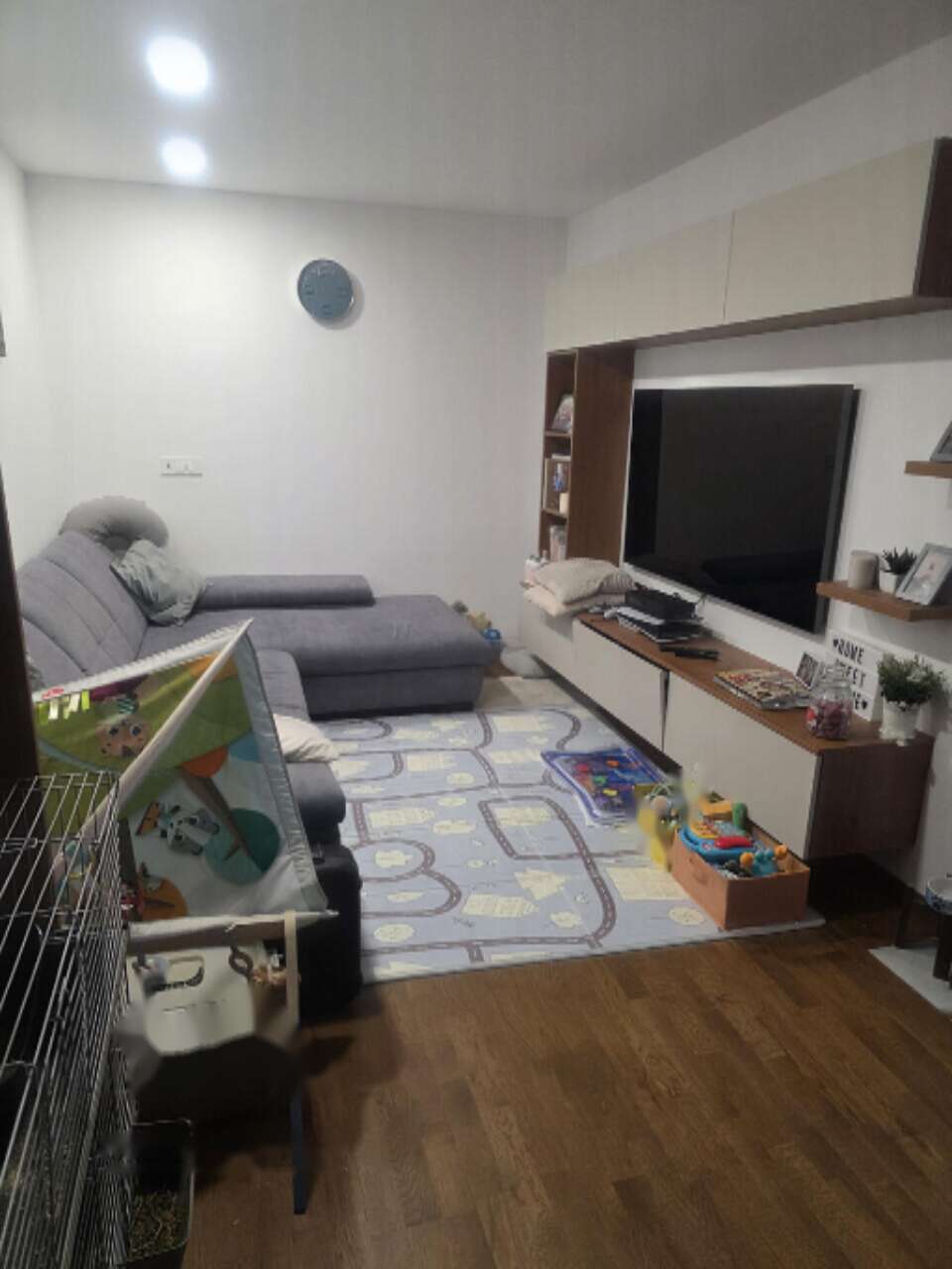 Квартира оснащена современной техникой и отличается продуманной планировкой: включает ванную комнату с дополнительной зоной, кухню, обеденную и гостиную, спальню и детскую. Полностью меблированная, она также оборудована газовым напольным отоплением, кондиционером и домофоном для вашего удобства.