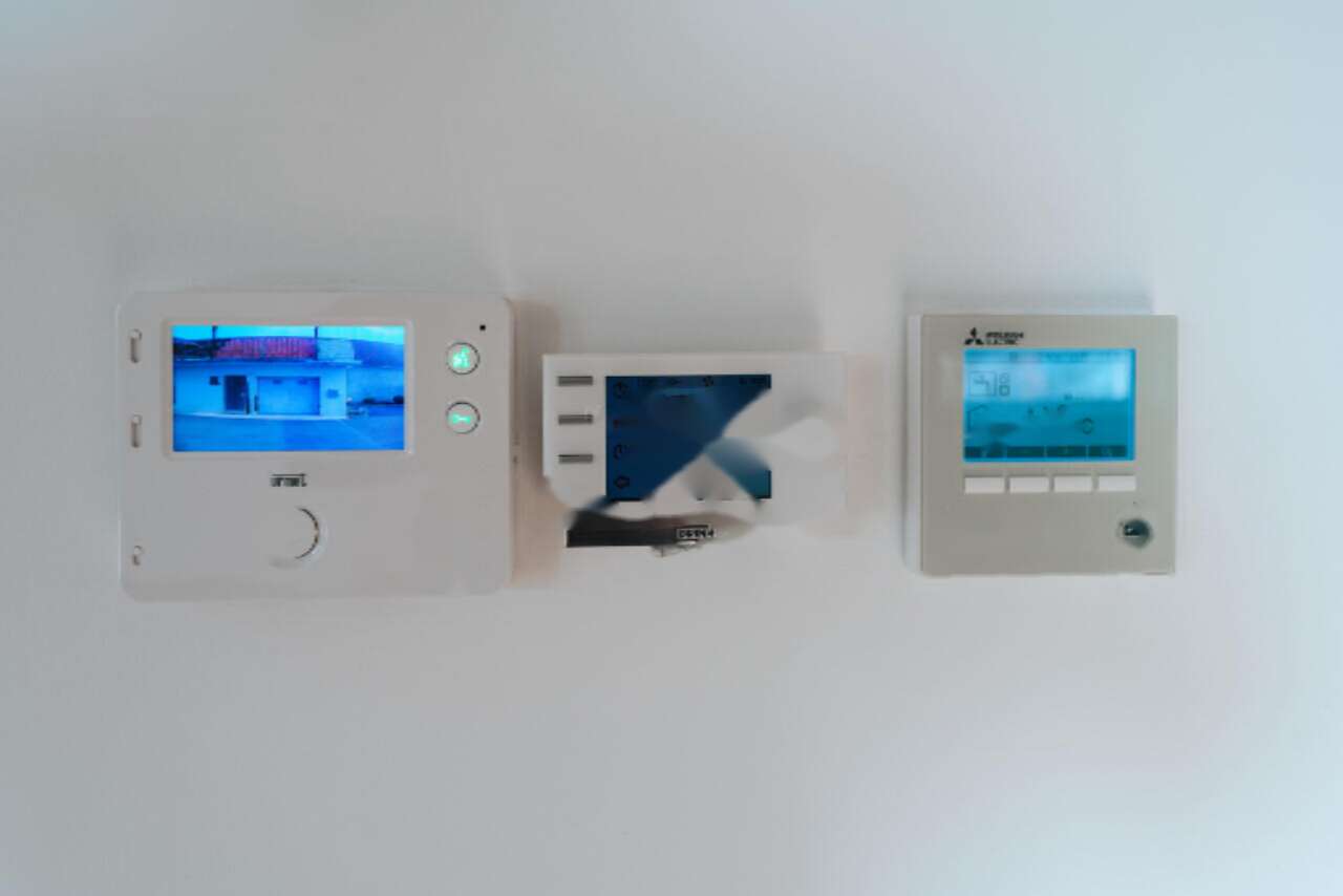 На открытом воздухе имеются терраса, сад и два частных парковочных места с опцией зарядки электромобилей. В доме установлены система подогрева пола, тепловой насос, кондиционеры и оптический интернет. Также предусмотрены монтаж камина, возможности для видеонаблюдения, система вентиляции и домофон.