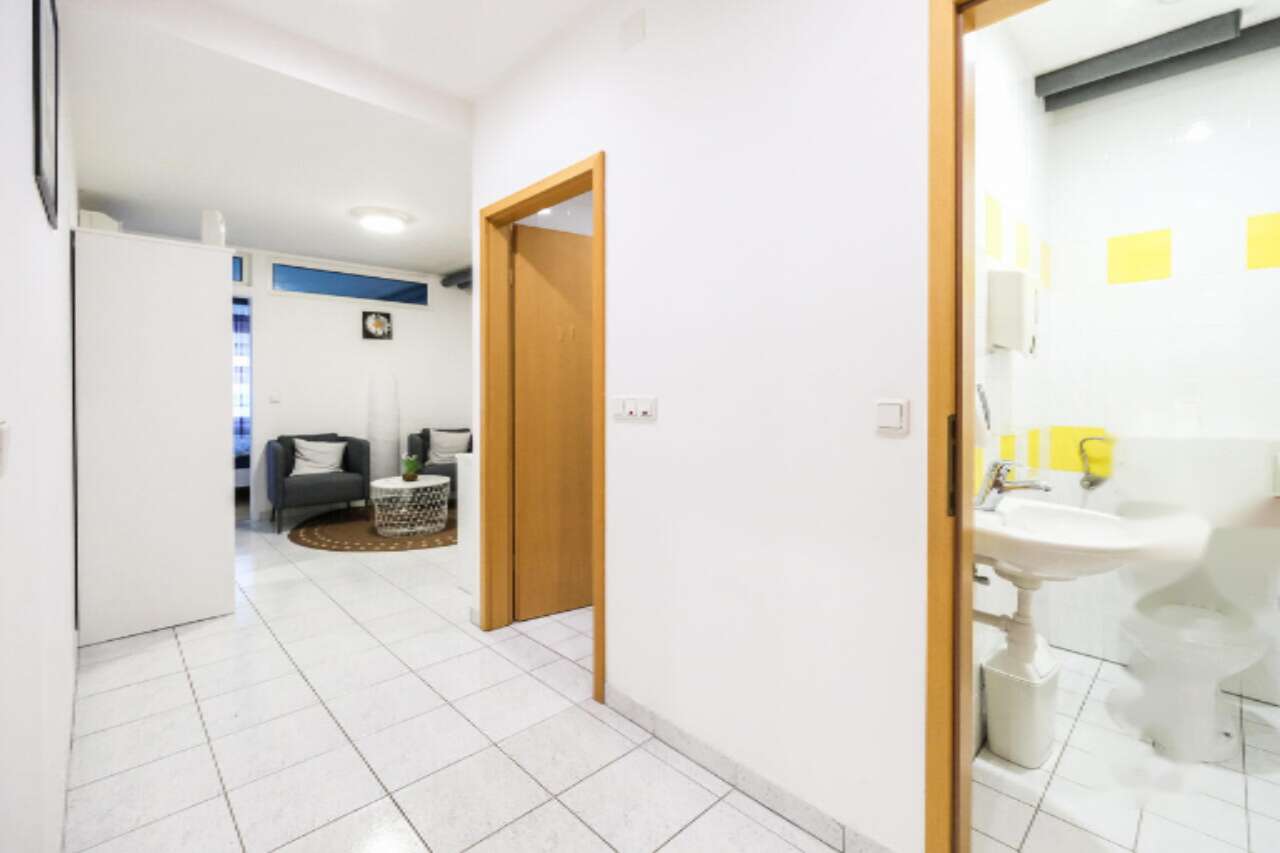 На продажу выставлено уникальное коммерческое помещение комбинированного типа, размещенное в районе Стегне города Любляна. Этот просторный объект общей площадью 445 м² был возведен в 1981 году и обновлен в 2011 году. Помещение распределено на три уровня: цокольный, первый и второй этажи. Оно включает в себя офисные пространства, жилую зону и складские площади.