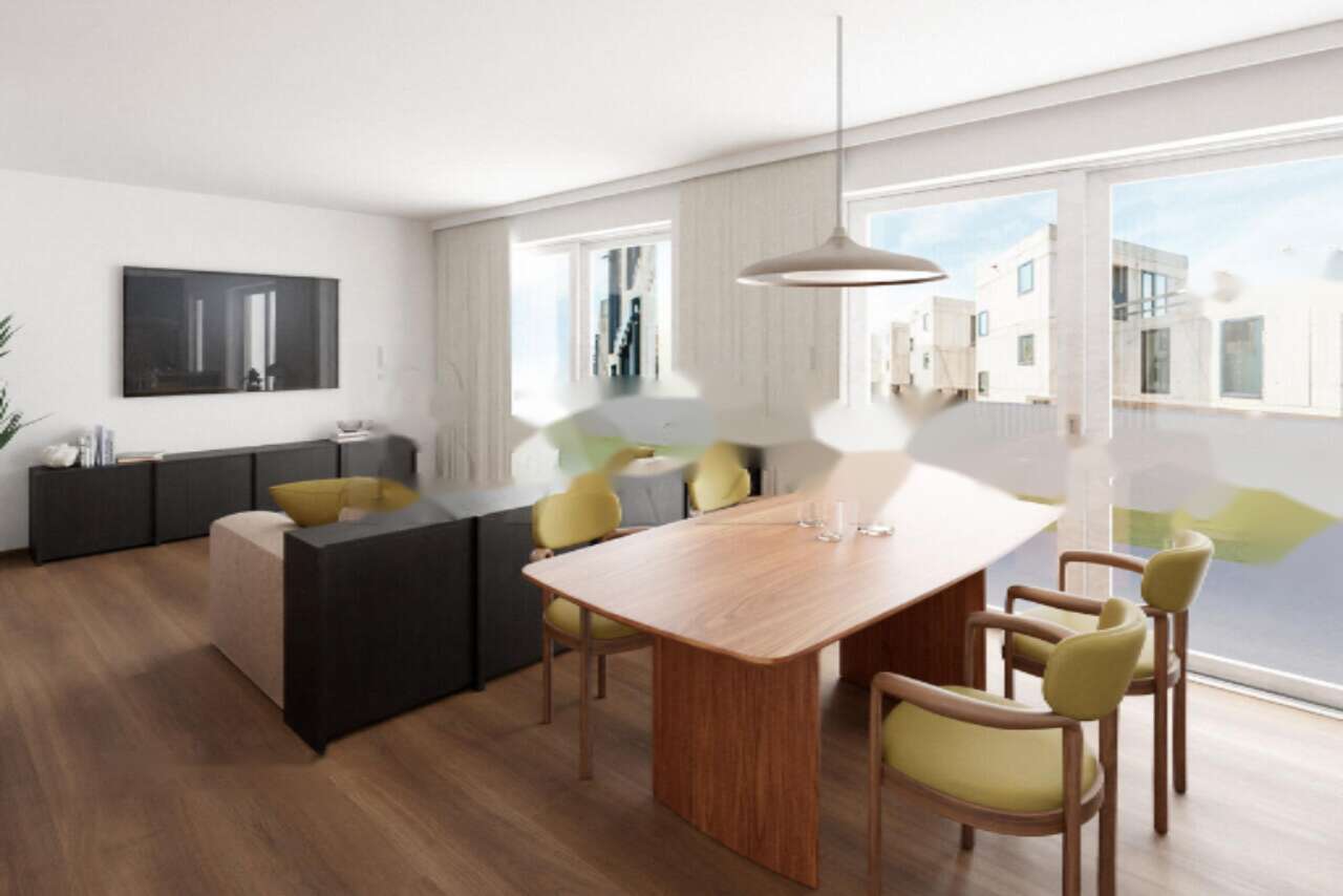 Среди ключевых преимуществ: просторная гостиная, соединенная с кухней и столовой на первом этаже, с выходом на террасу и зеленую зону. На этом уровне также предусмотрены туалет, помещение для велосипедов и наружная кладовая. На втором этаже две спальни, ванная комната и хозяйственное помещение. На третьем этаже расположены спальня с гардеробом и ванной, а также большая терраса с прекрасными видами.