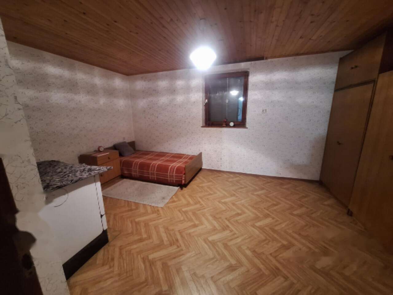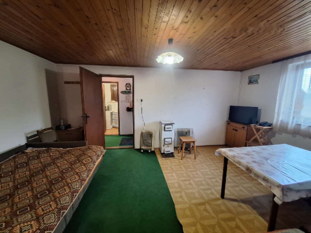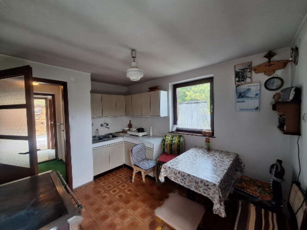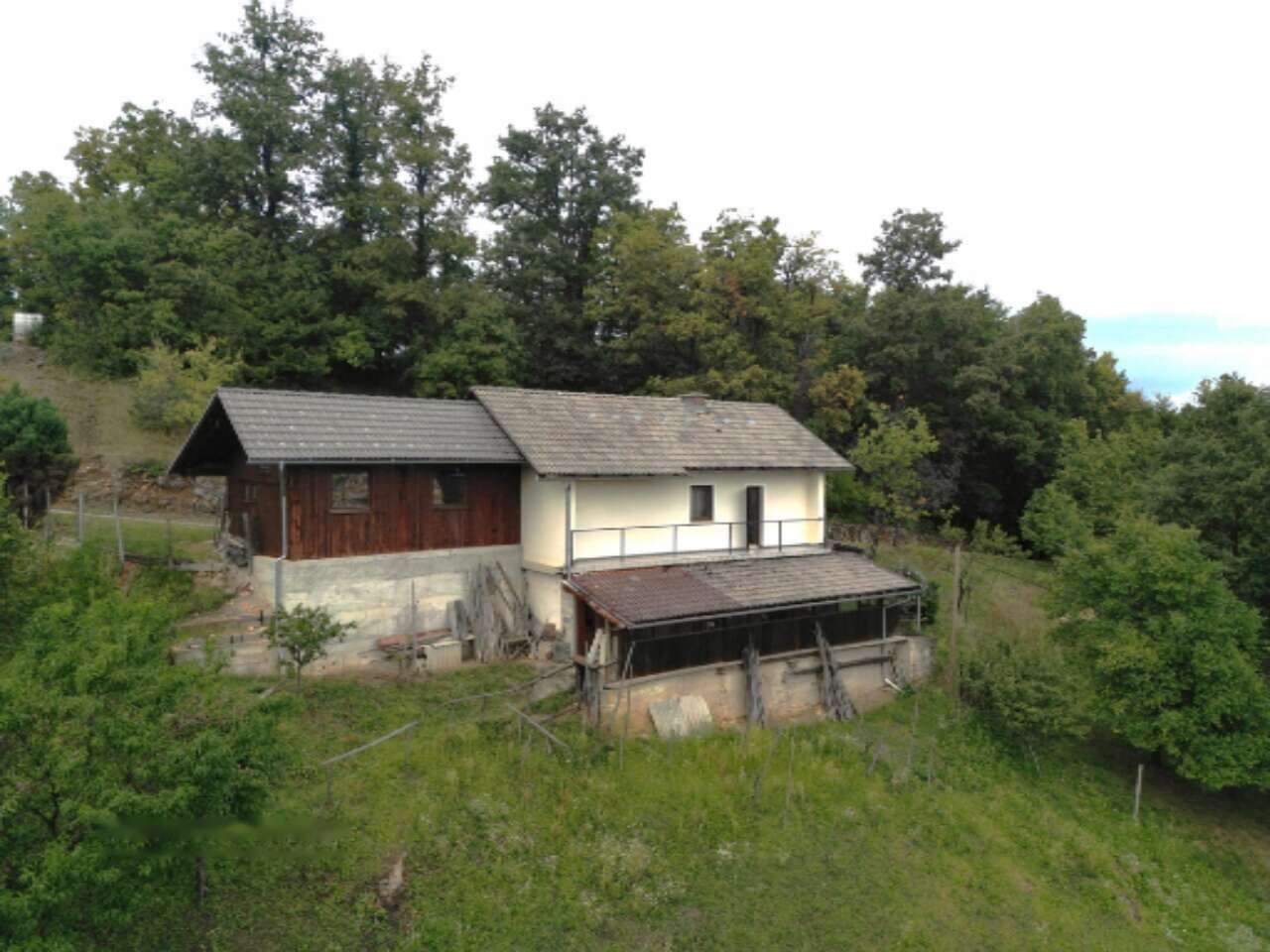 Построенный в 1979 году, этот дом полностью готов для комфортного проживания. На нижнем уровне расположены три просторных подвала и дополнительная комната для встреч или хранения. Жилой этаж включает в себя кухню с деревянной печью, столовую, кладовую, ванную комнату с душем, прихожую и две спальни. Балкон предлагает завораживающий вид на окружающую зелень. Чердачное пространство еще не завершено и ждет вашего креативного подхода.