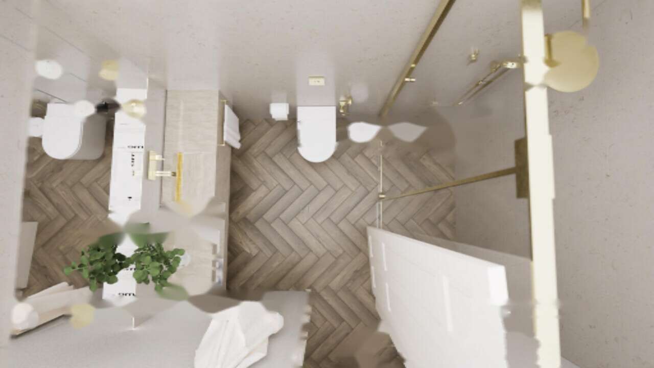 - Паркет из дуба в «ёлочку» везде, кроме ванных комнат