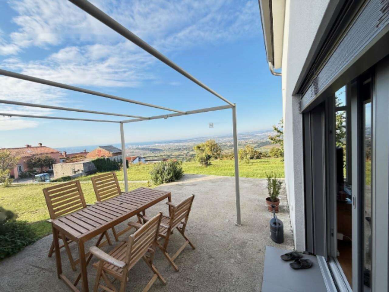 Перед домом имеется парковочная зона, вмещающая 3-4 автомобиля. Такое местоположение идеально подходит для семей, которые ценят тишину и спокойствие вдали от городской суеты, с удобствами в шаговой доступности. Ближайшая школа находится всего в пяти минутах ходьбы, а расстояние до центра Копера составляет всего 10 км.