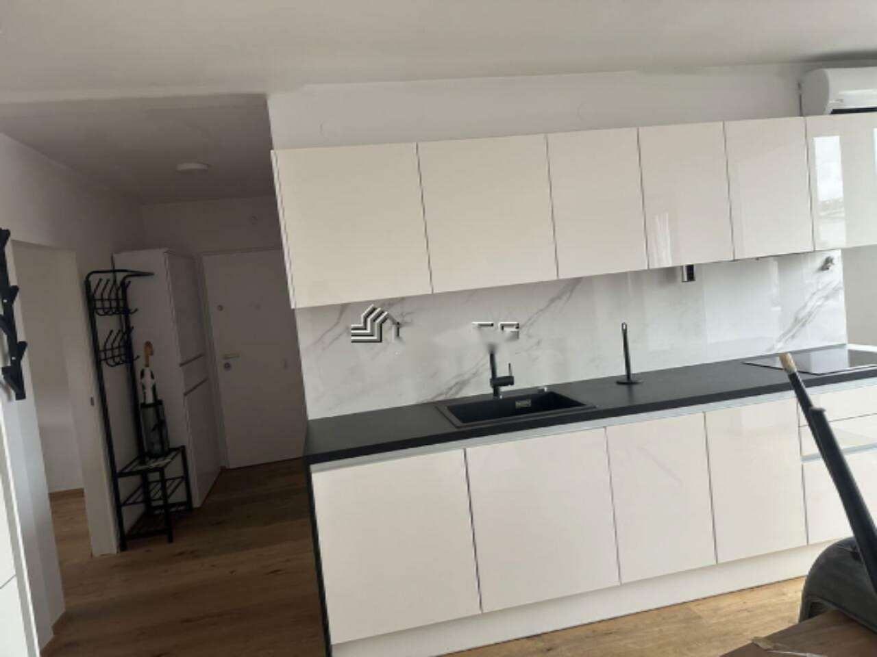 Квартира обосновалась в тихом и приватном уголке на четвертом этаже без лифта, с обустроенной парковкой на территории комплекса. В непосредственной близости находятся детский сад, школа, магазины, бытовые и сервисные заведения, остановки общественного транспорта, рекреационные маршруты, университеты, стадион и удобный доступ к окружной дороге.
