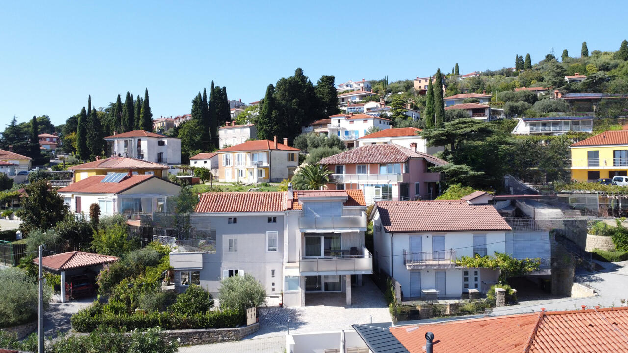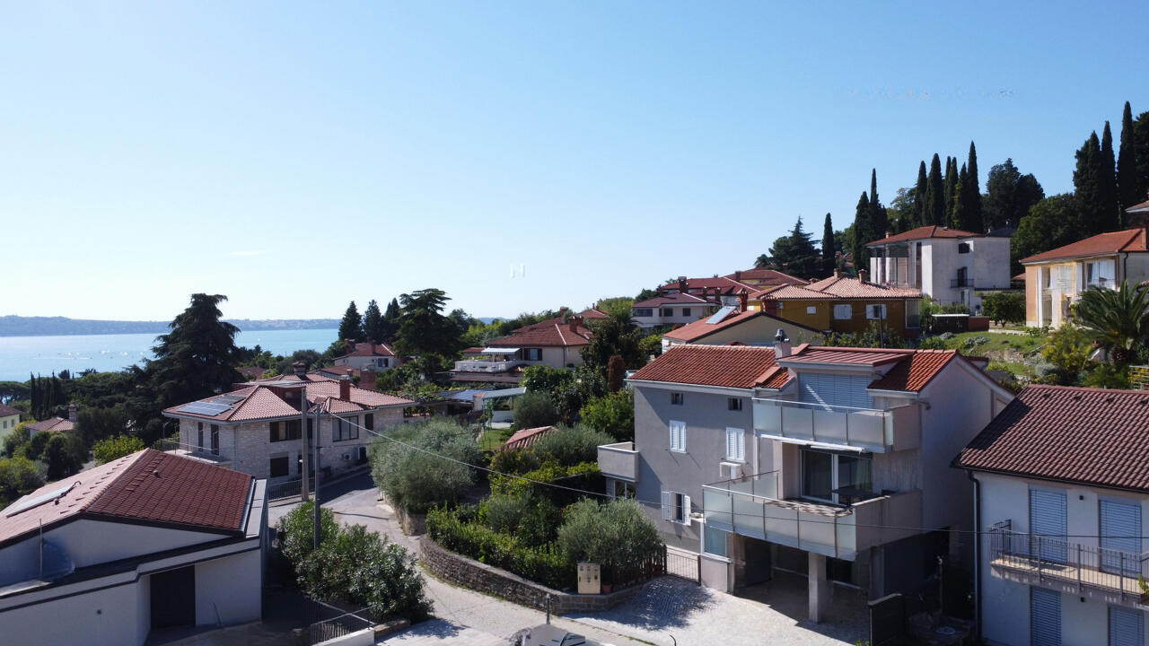 В самом сердце Порторожа выставлен на продажу прекрасно ухоженный дом в один этаж, построенный в 2014 году, который предлагает современный комфорт и высокое качество строительства в исключительном месте. Дом занимает общую площадь в 134,4 м² и находится на участке 118 м². Архитектурное решение включает три этажа и мансарду с общей жилой площадью 108,2 м².
