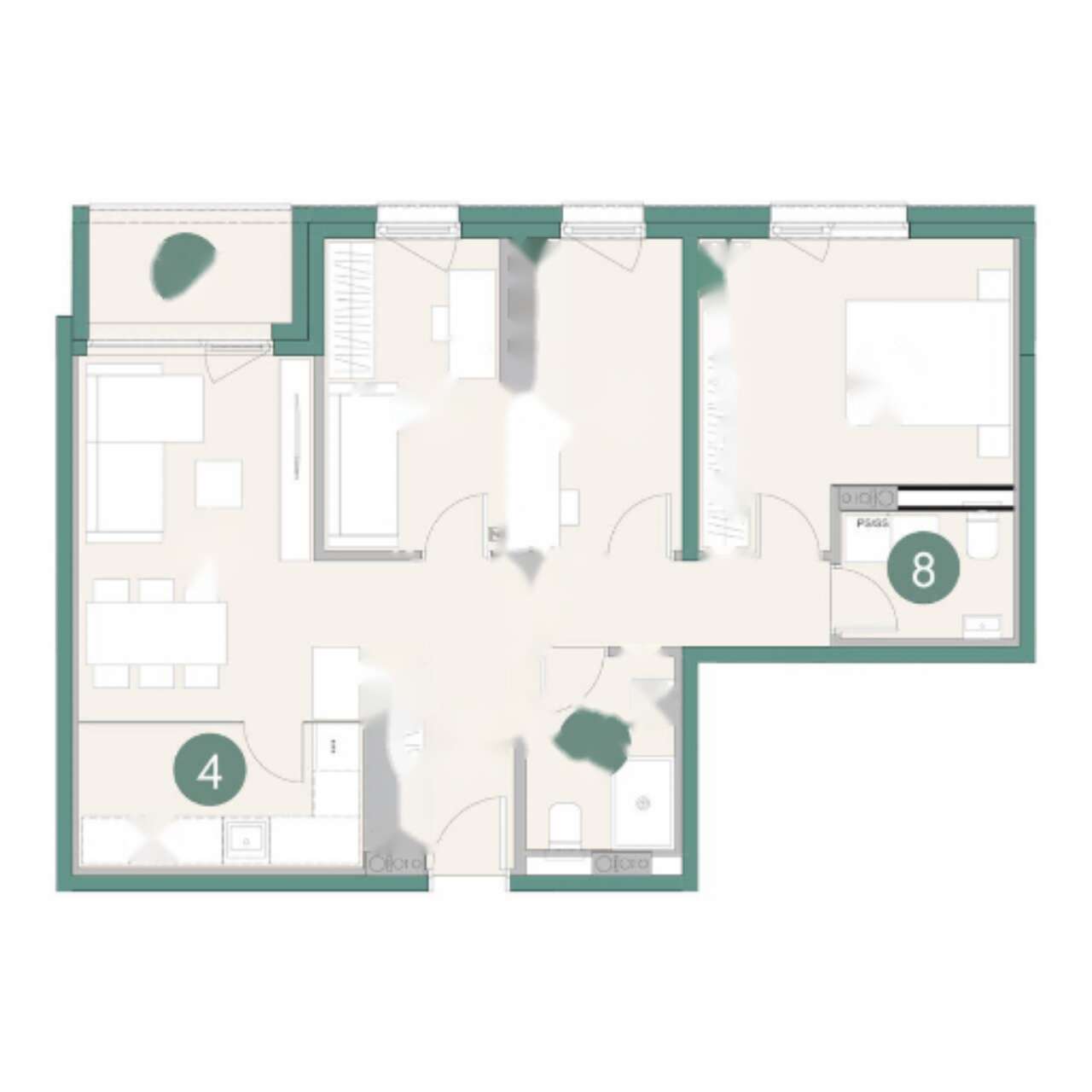 Благодаря продуманному дизайну, апартаменты обеспечивают оптимальное использование жилой площади, сохраняя при этом комфорт. Вас ждут гостиная зона, просторная кухня, главная спальня, две дополнительные комнаты, кладовая и ванная комната. Также в вашем распоряжении будет уютная небольшая лоджия и подвал для хранения личных вещей.